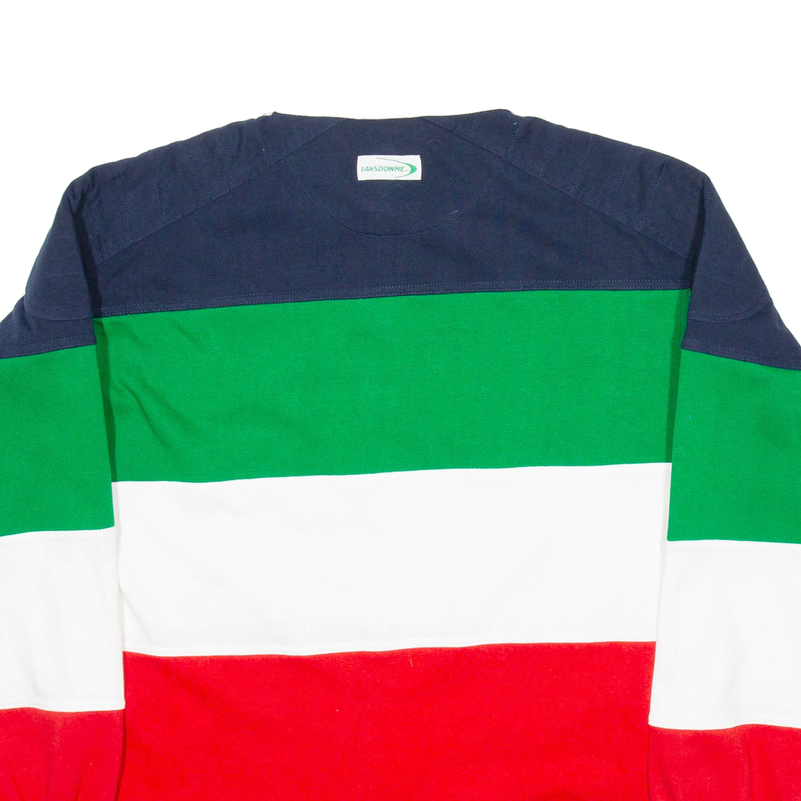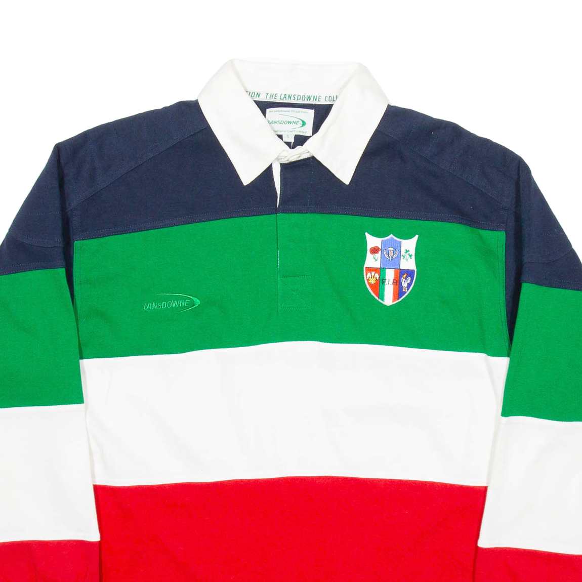 LANSDOWNE Federazione Italiana Rugby Mens Polo Shirt Green Striped Long Sleeve S