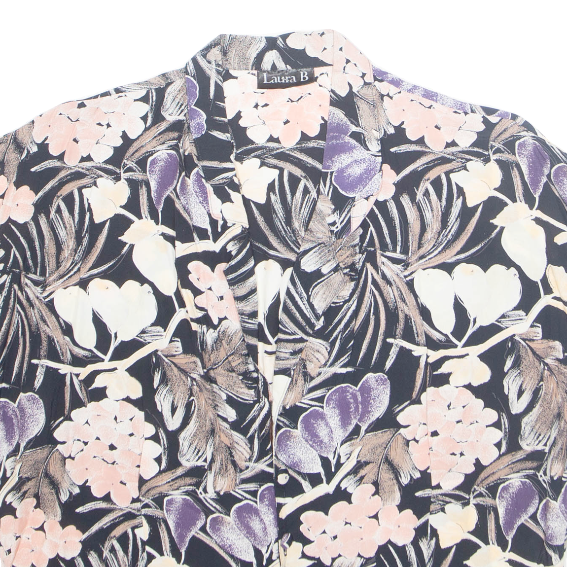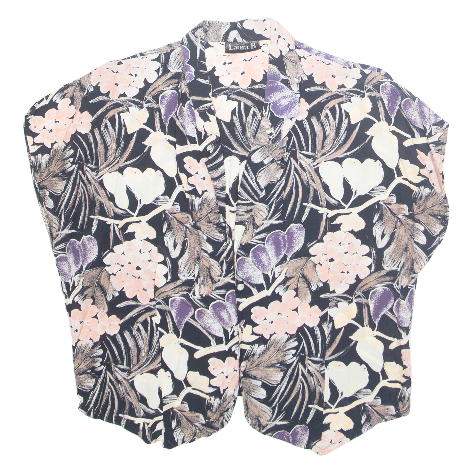 LAURA B Womens Shirt Black V-Neck Sleeveless Viscose Floral S