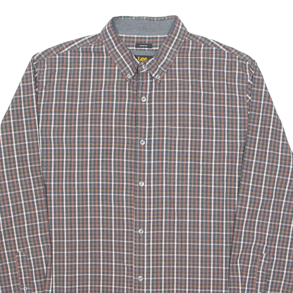 LEE Stretch Mens Shirt Brown Check Long Sleeve XL