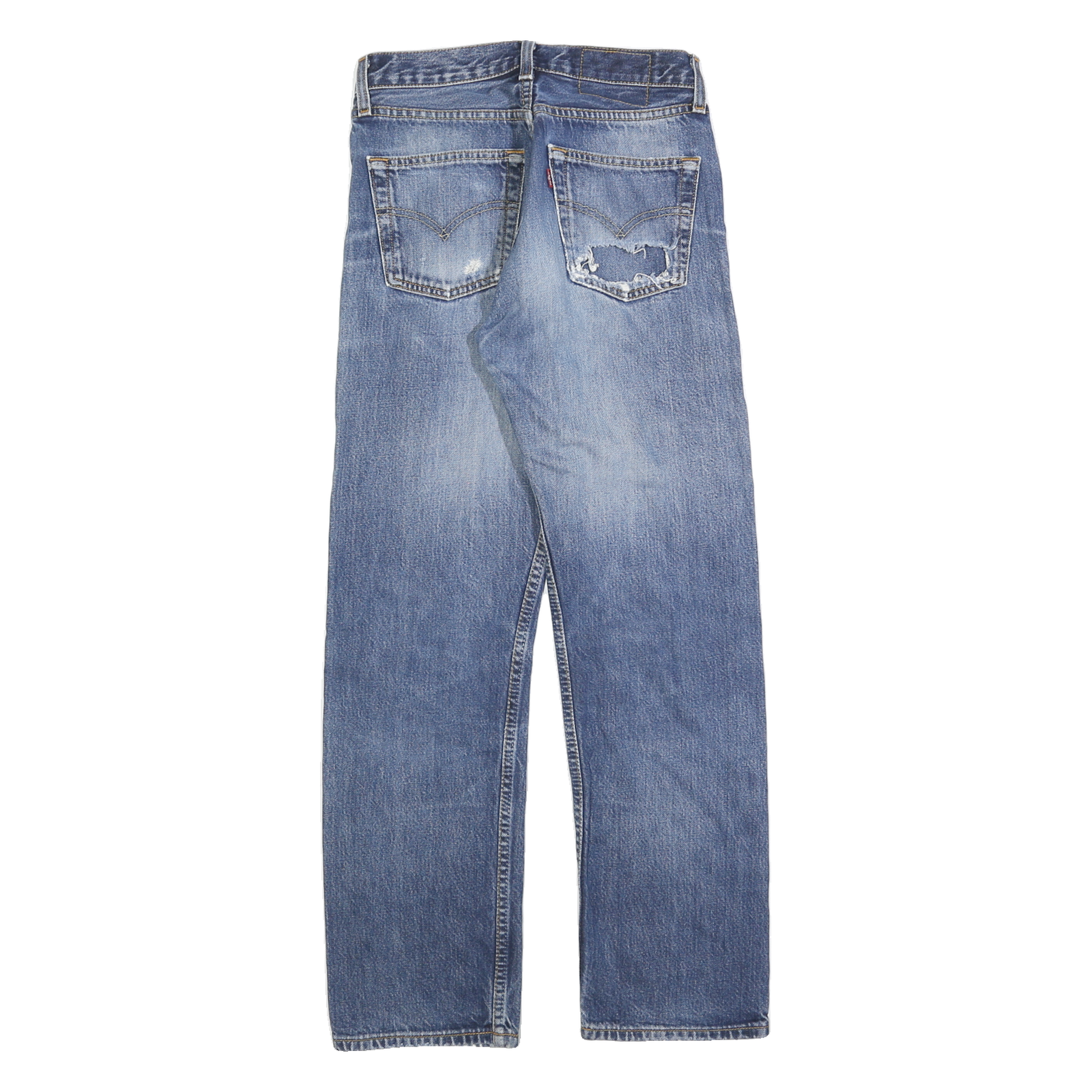 LEVI'S Mens Regular Fit Blue Denim Jeans W26 L28 Distressed Button Closure