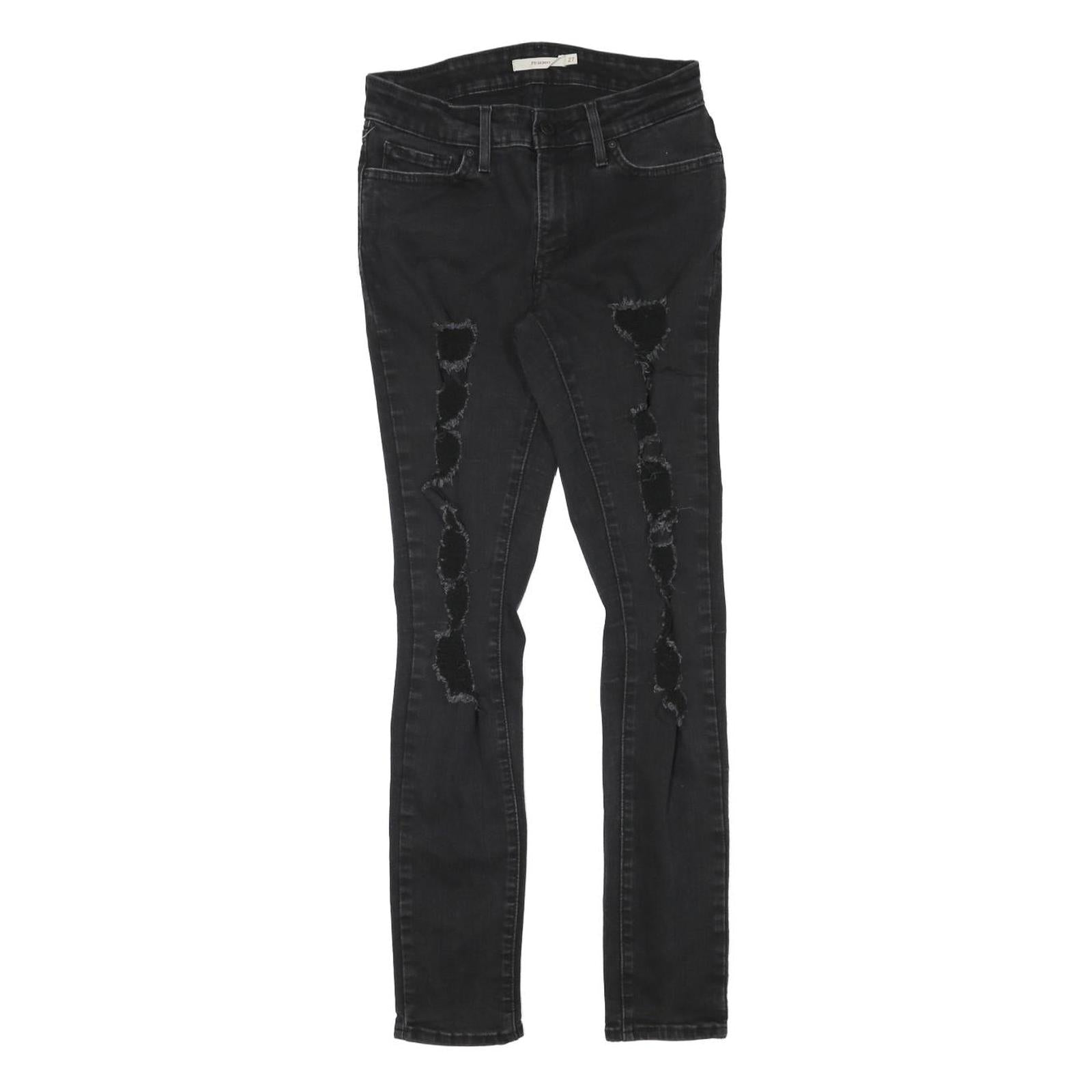 LEVI'S Womens Slim Black Denim Slim Skinny Jeans Cotton Blend W25 L28 Distressed