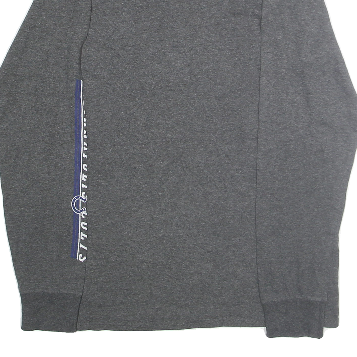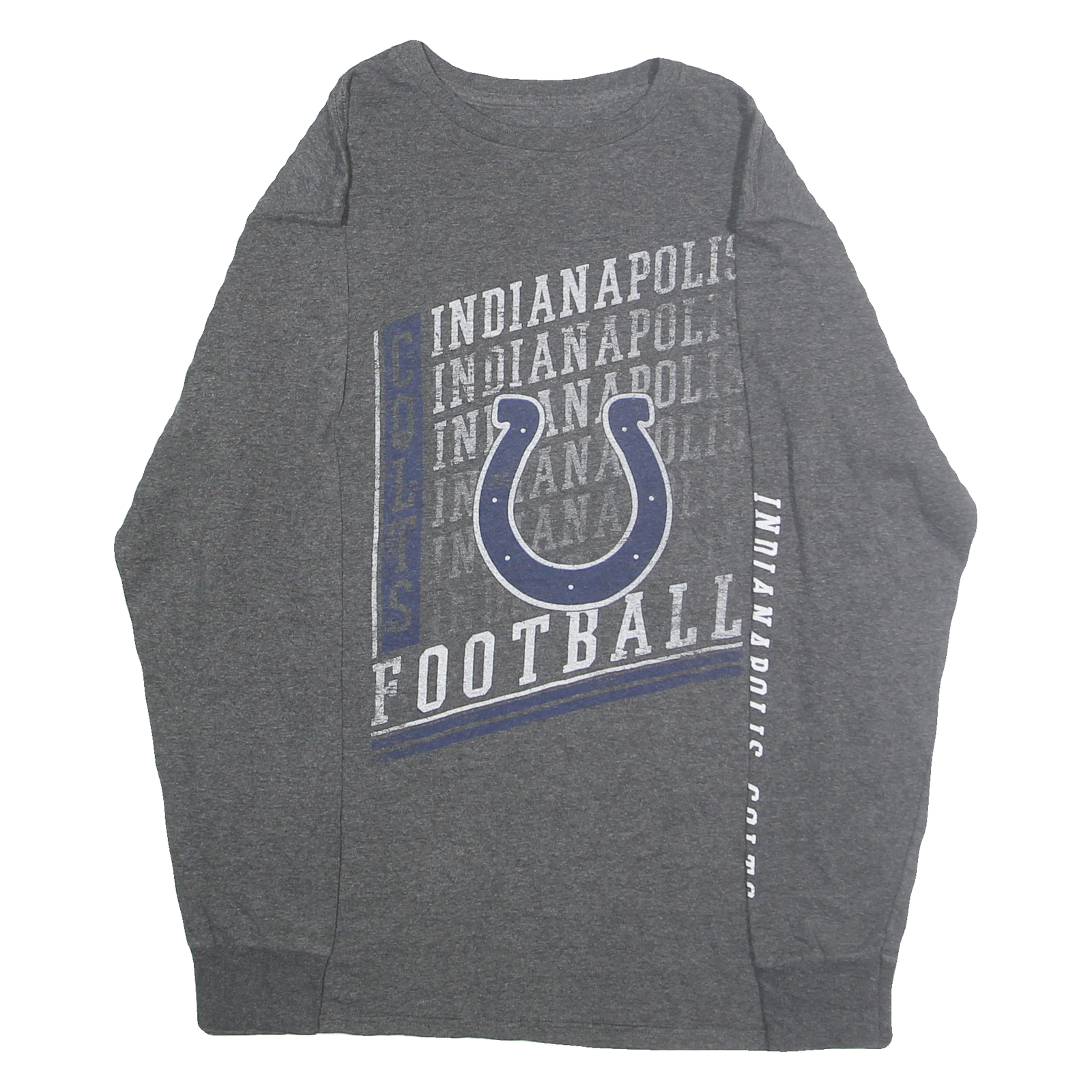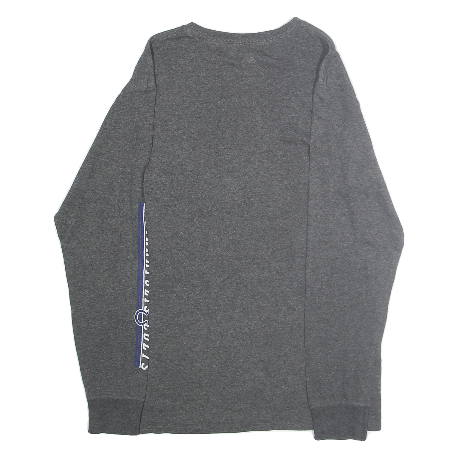 Crafted from a cotton blend, this long-sleeve shirt offers a classic fit suitable for casual wear or sports fan occasions. It has a crew neckline and ribbed cuffs that add to the relaxed yet structured style, making it a versatile piece for layering or standalone wear. It demonstrates authentic NFL licensed team branding, ideal for Colts supporters or collectors.