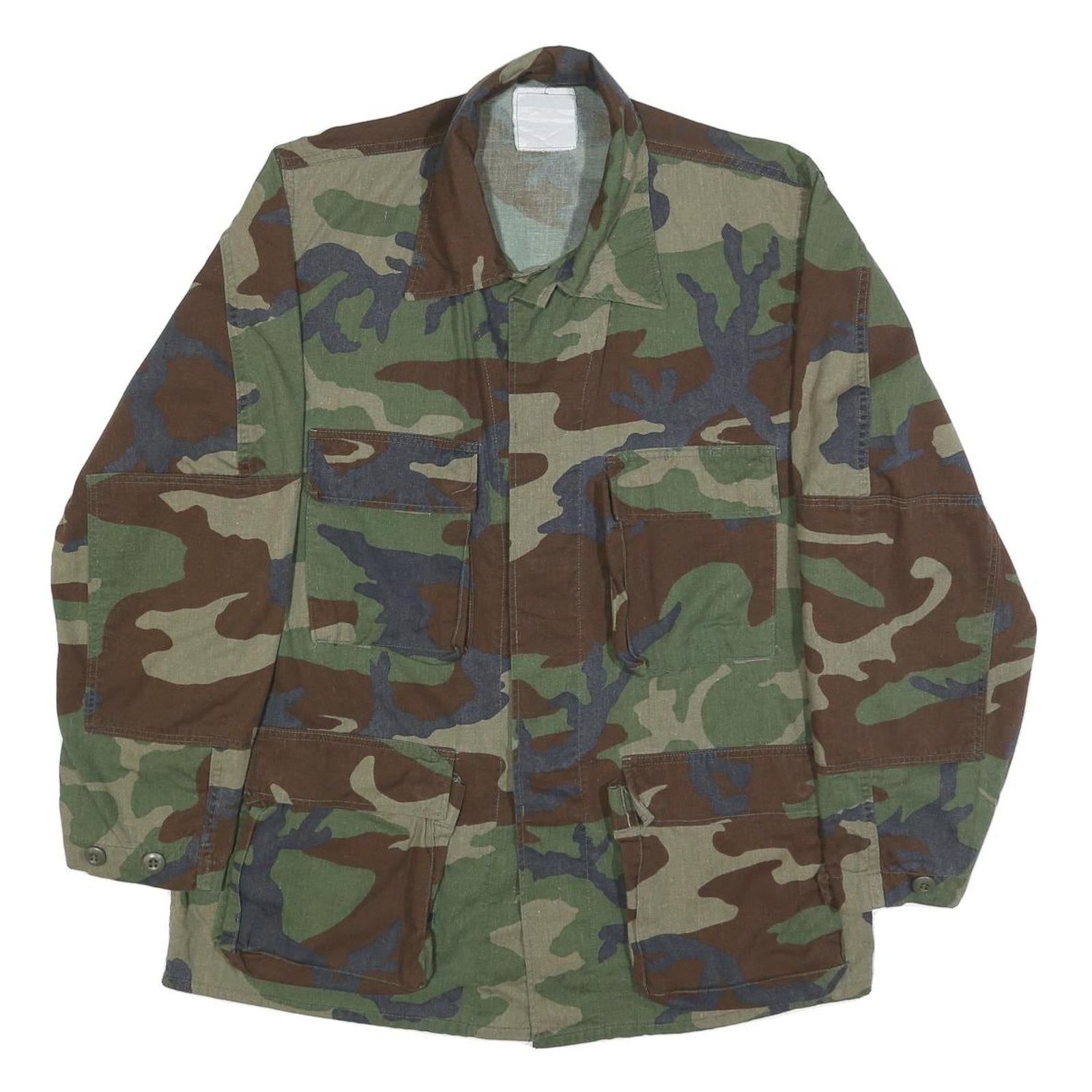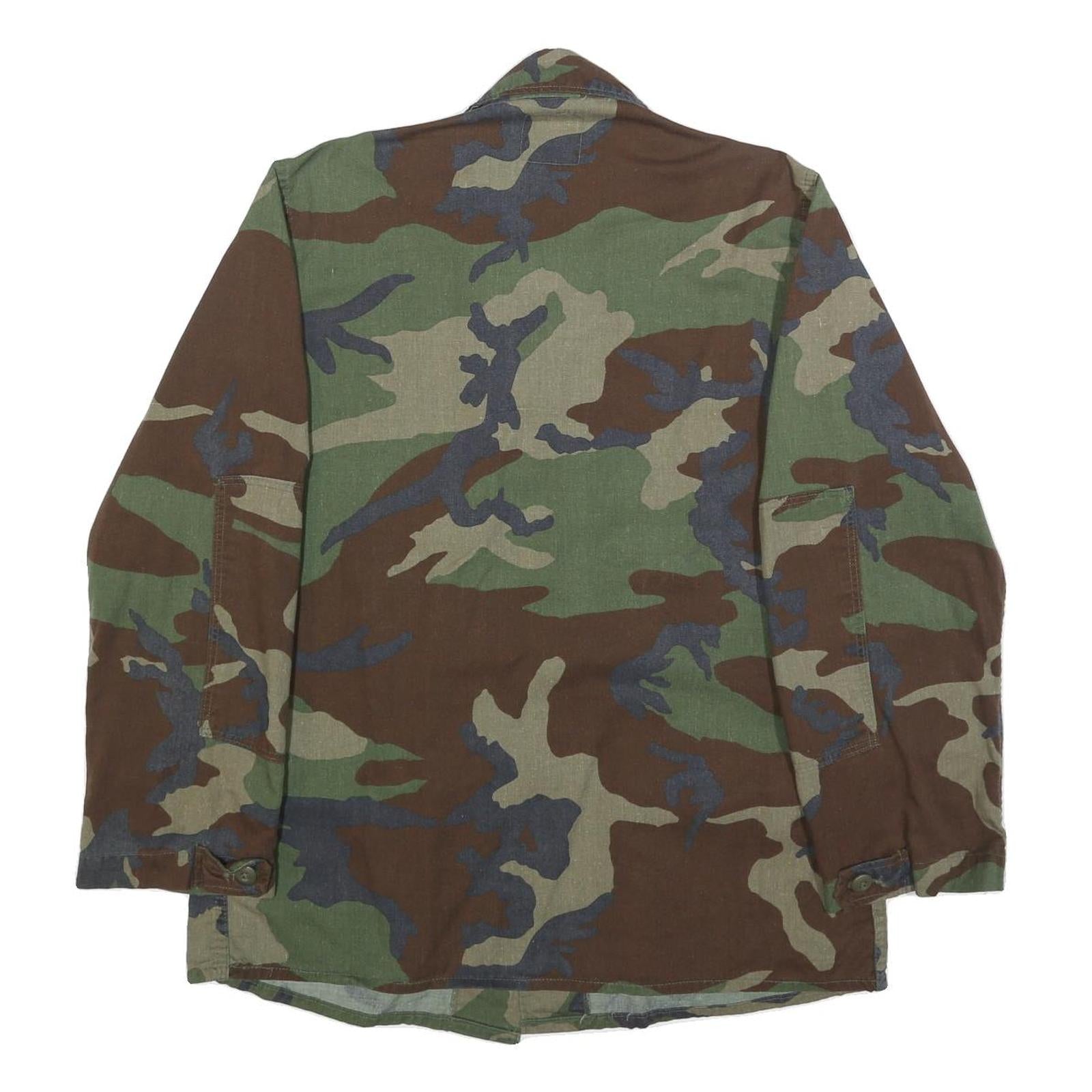 Mens Green Brown Camouflage Cotton Blend Button Jacket S Military Style Pocketed