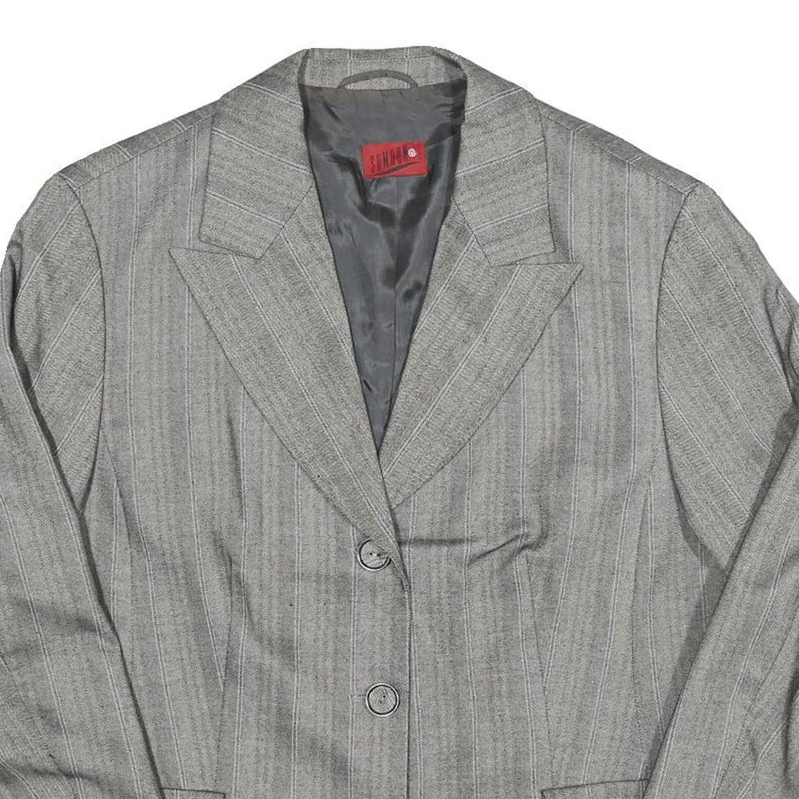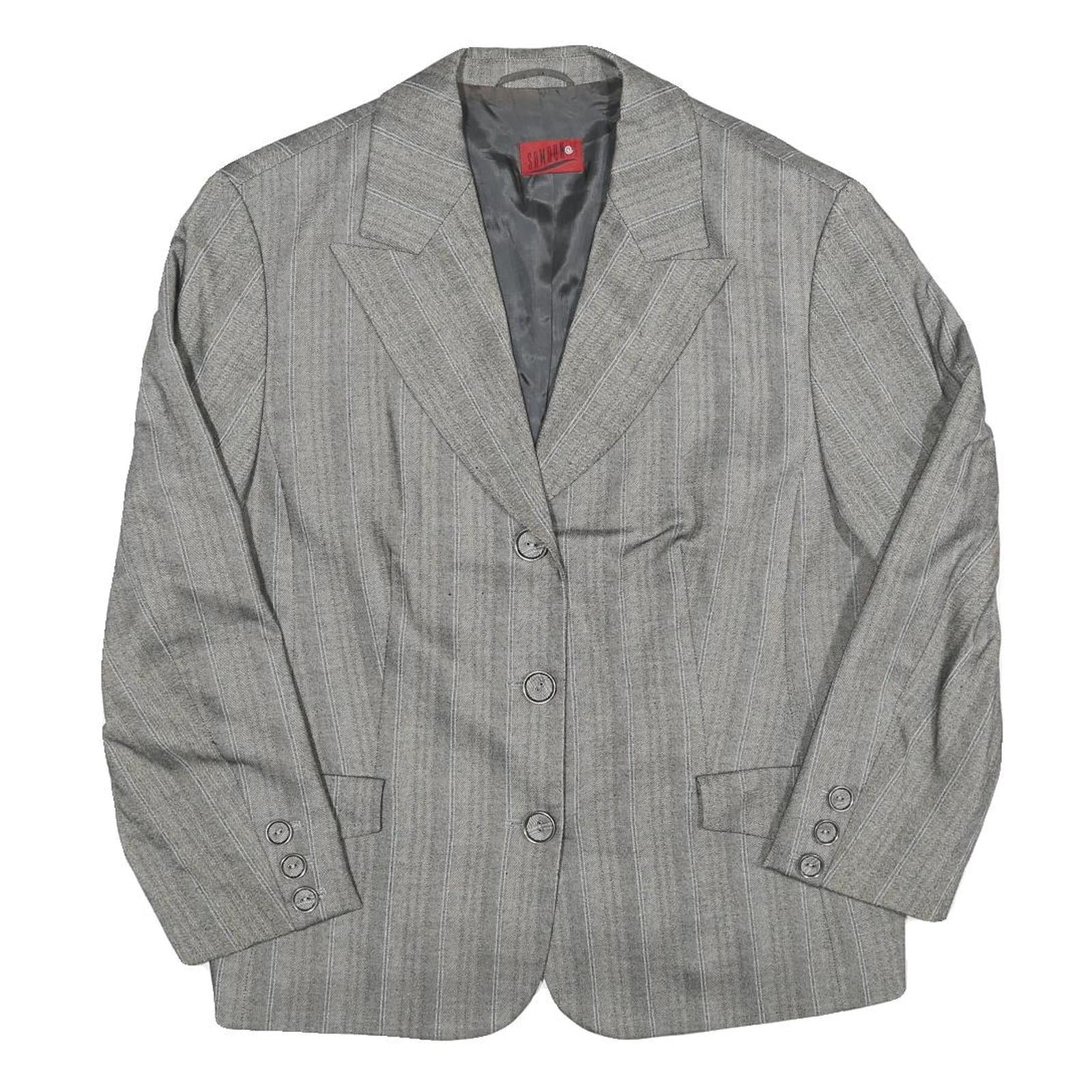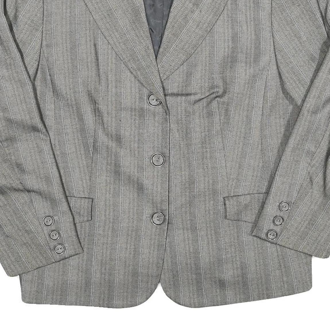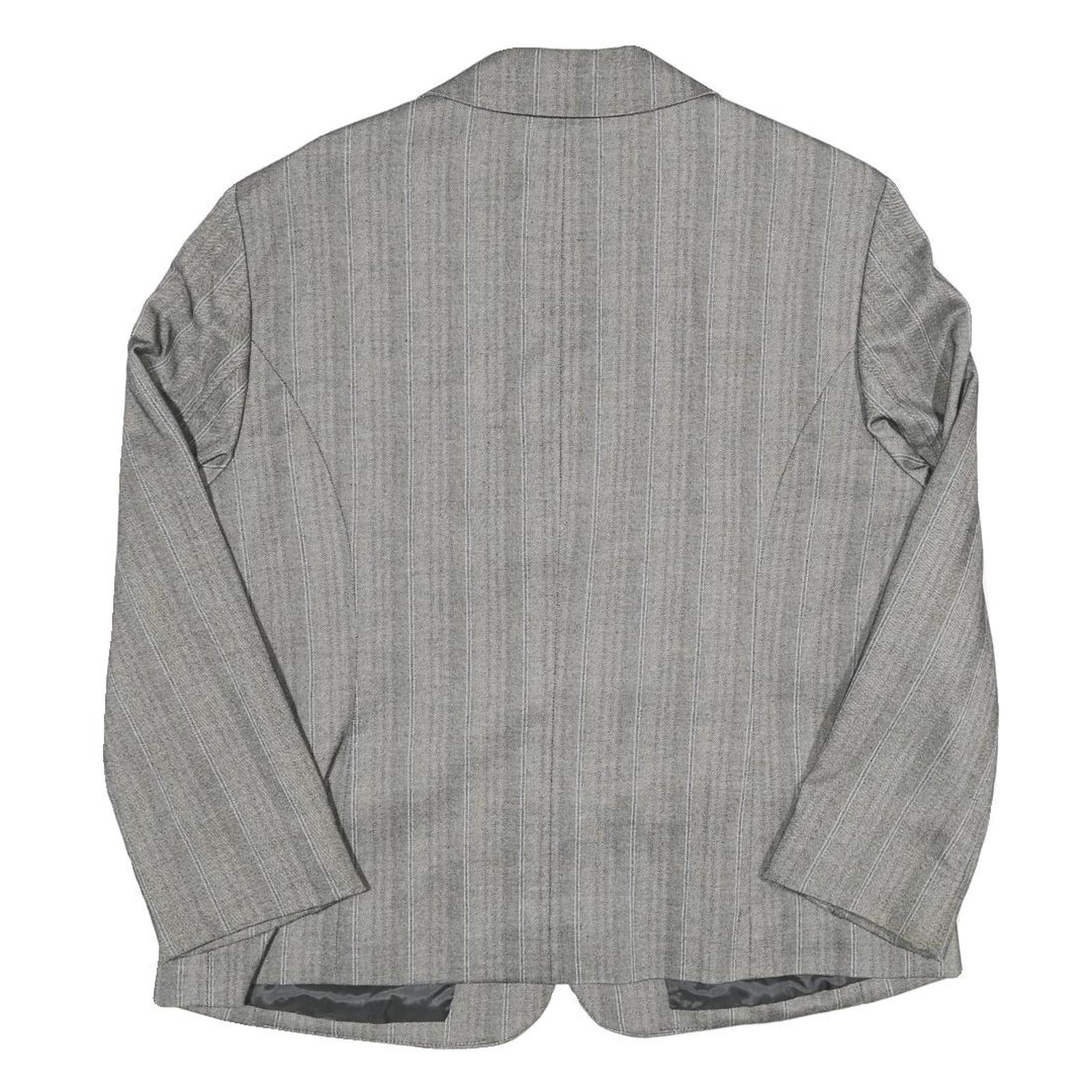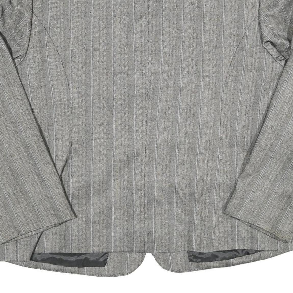 Mens Grey Pinstripe Button Jacket L Polyester Blend Classic Tailored