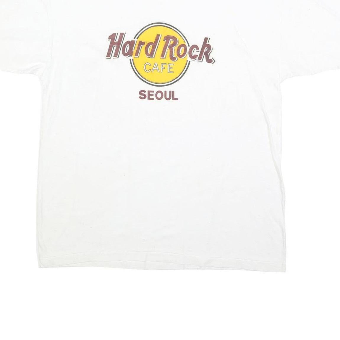 Mens White Hard Rock Cafe Seoul Graphic T-Shirt L Short Sleeve Crew Neck Vintage