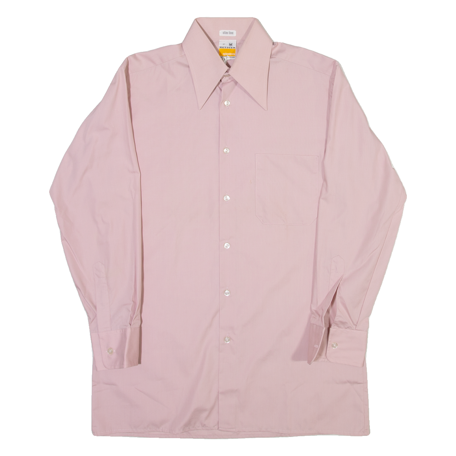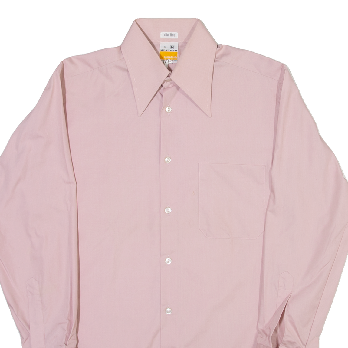 METZGER Slim Fit Mens Plain Shirt Pink Long Sleeve S