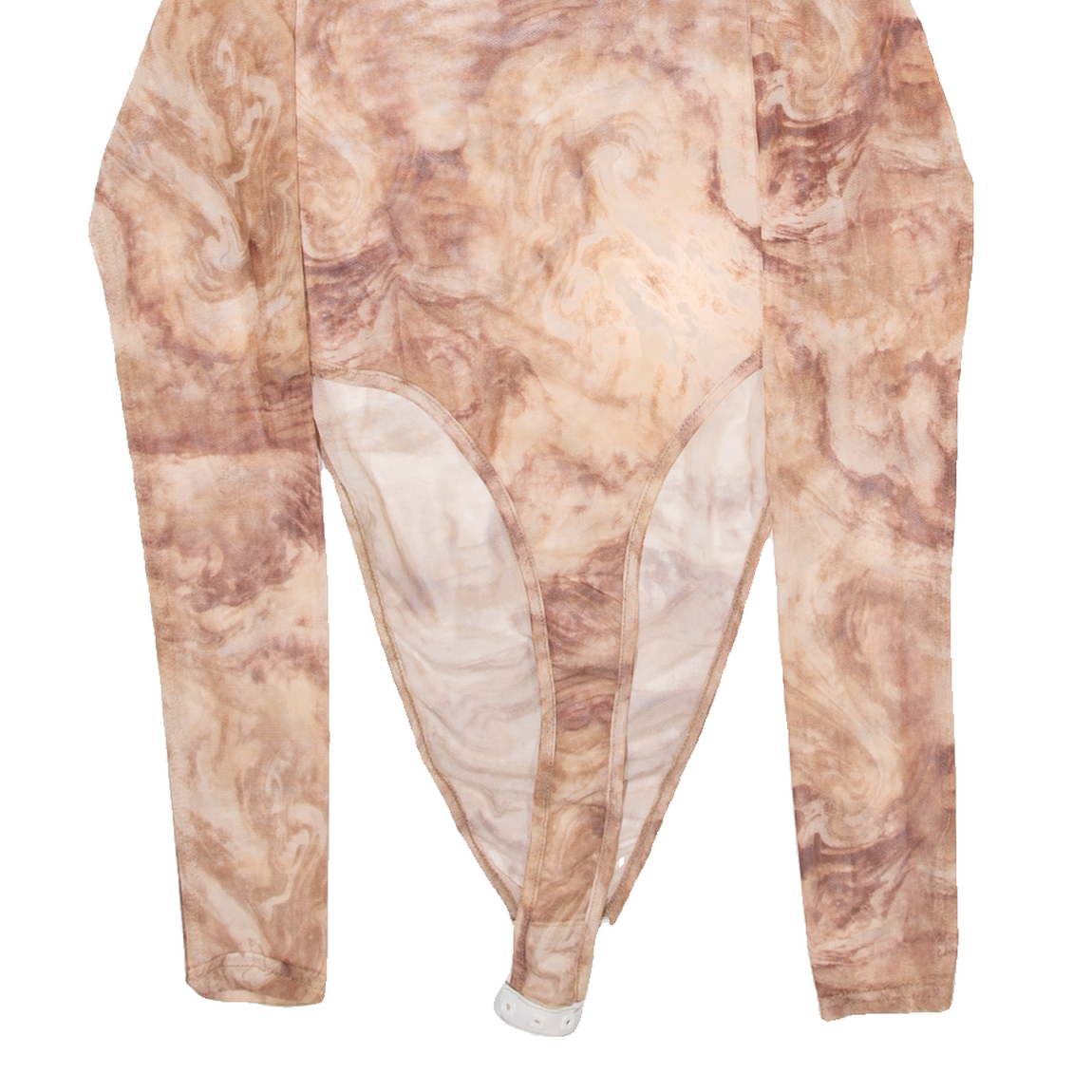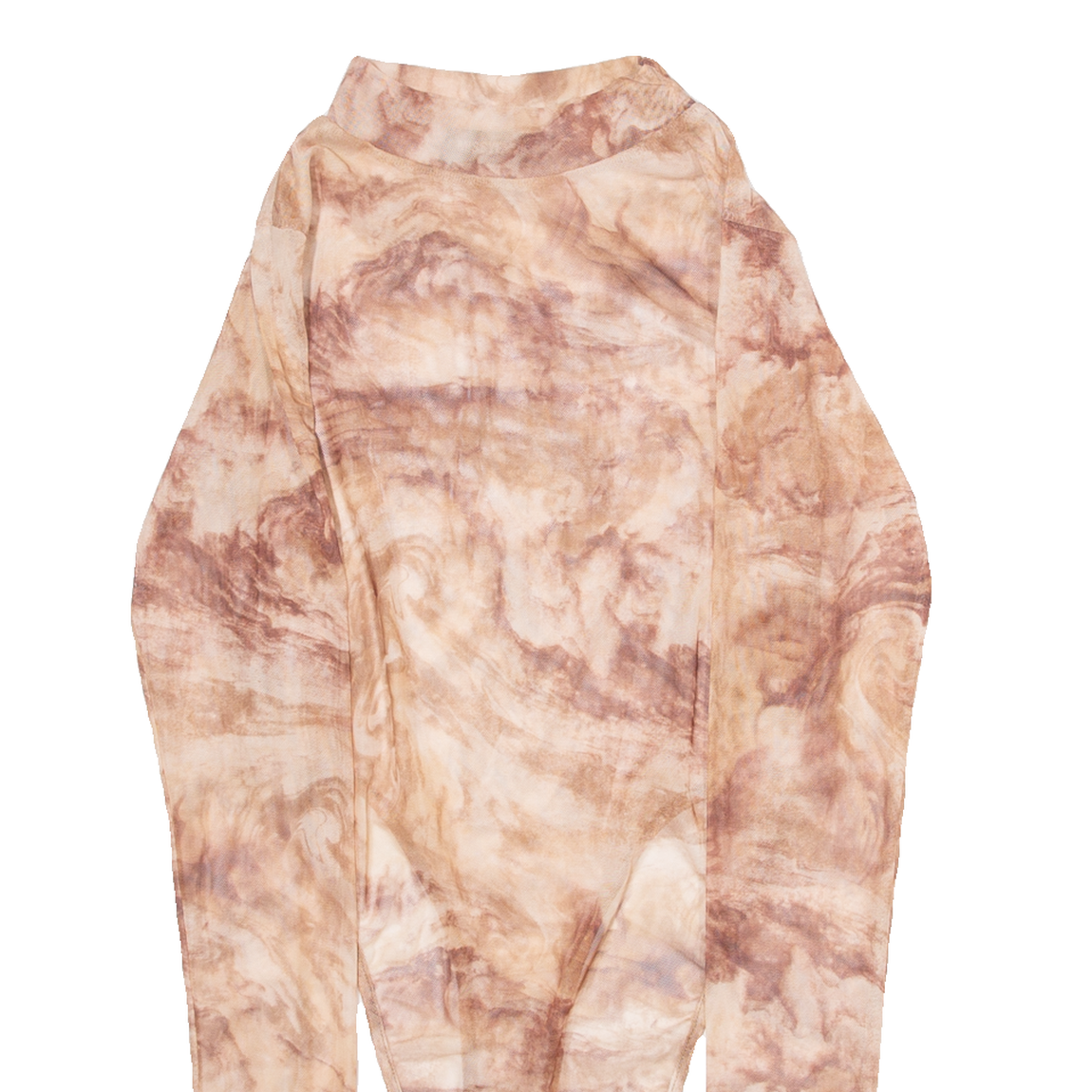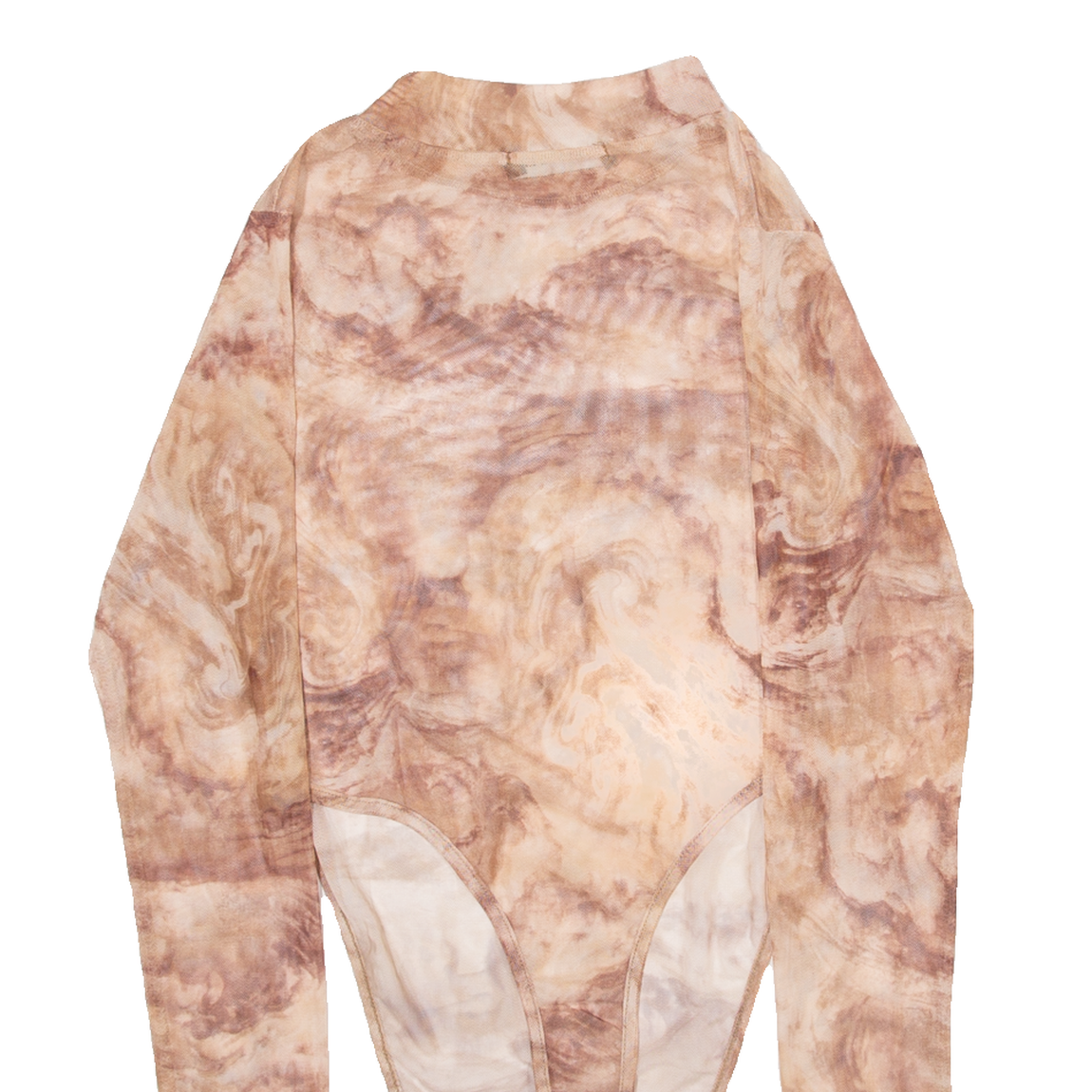 MISSY EMPIRE Womens Bodysuit Top Brown High Neck Long Sleeve Crazy Pattern XXS
