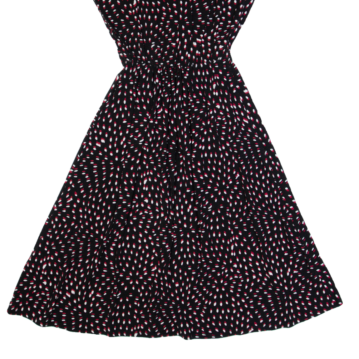 MONSOON Womens A-Line Dress Black Spotted Short Sleeve Midi UK 10