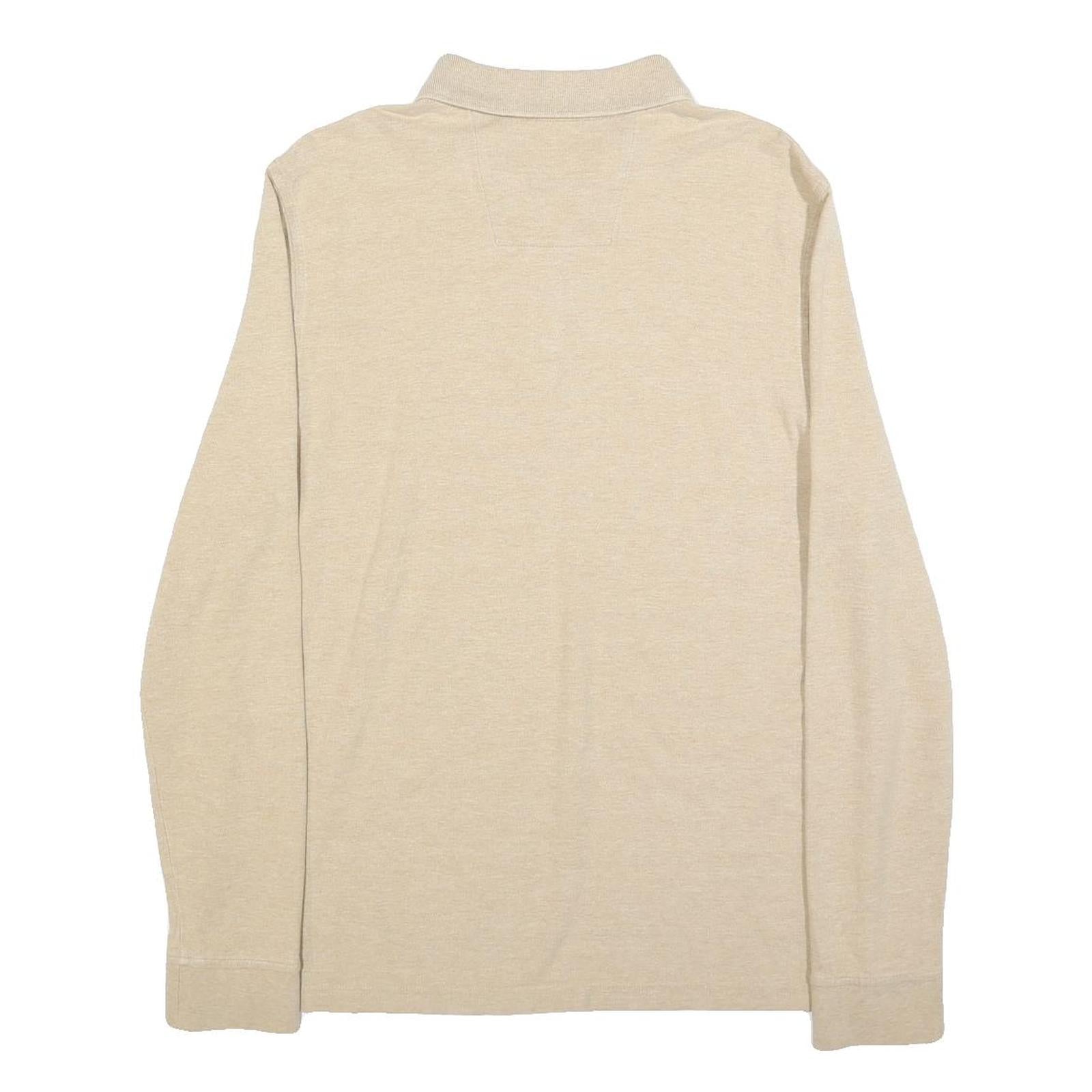 NAUTICA Mens Beige Long Sleeve Plain L Cotton Blend Polo Shirt Classic Fit