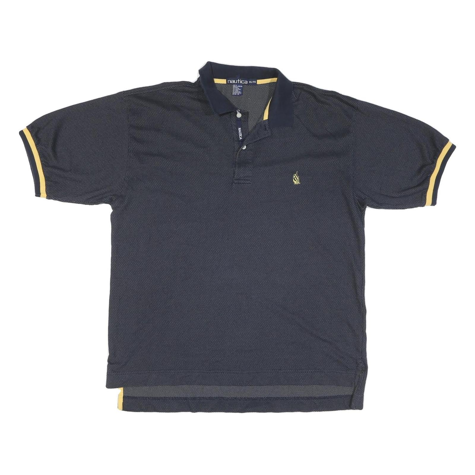 NAUTICA Mens Blue & Yellow Short Sleeve Polo Shirt XL Cotton Blend Classic Fit