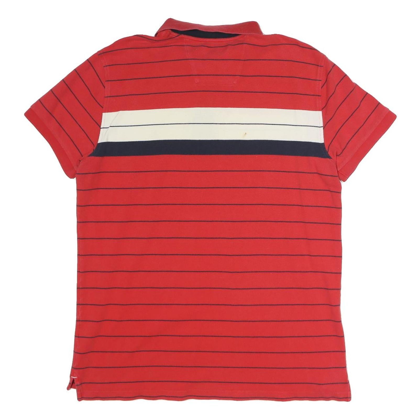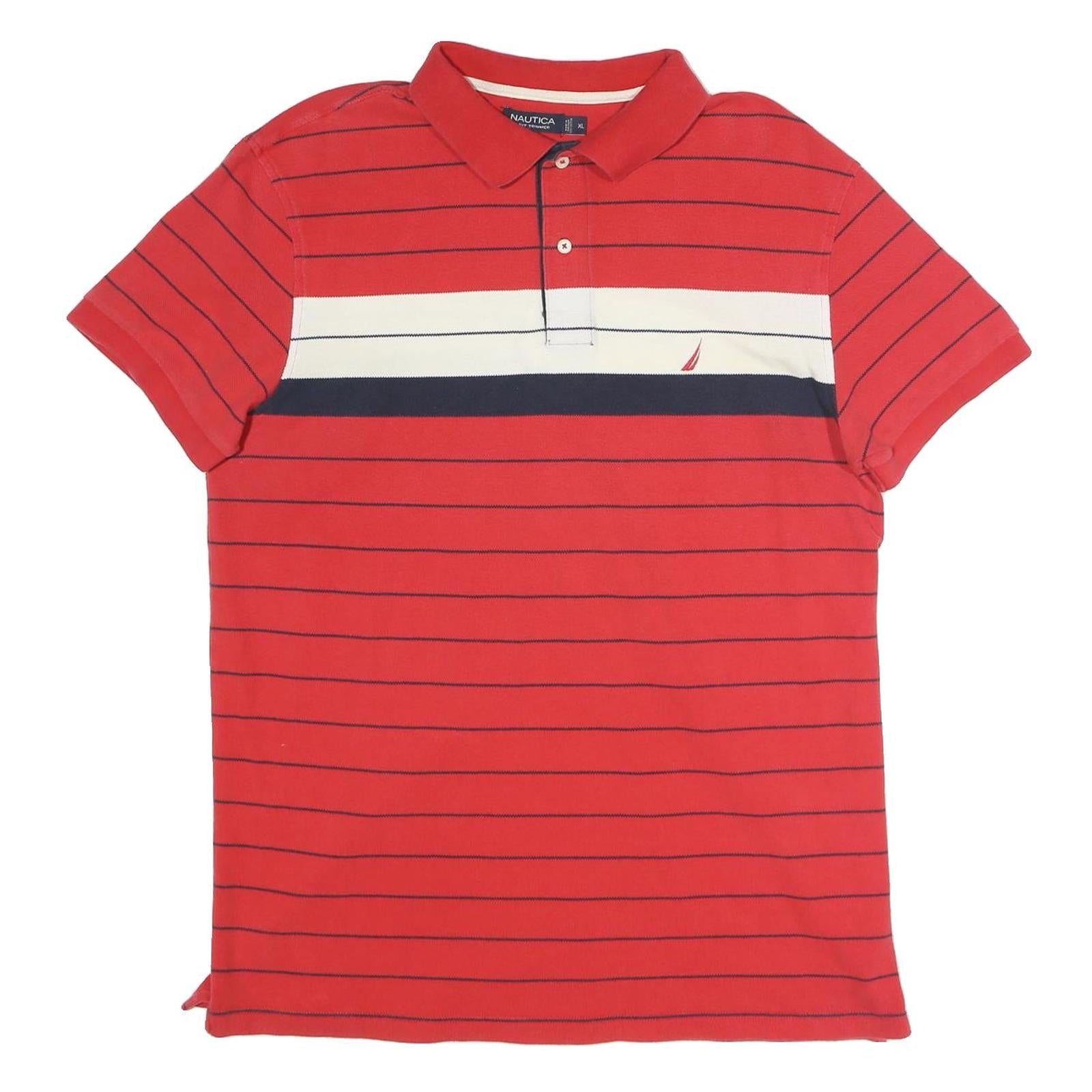 NAUTICA Mens Red & Navy Blue Striped Short Sleeve Polo Shirt XL Cotton Casual