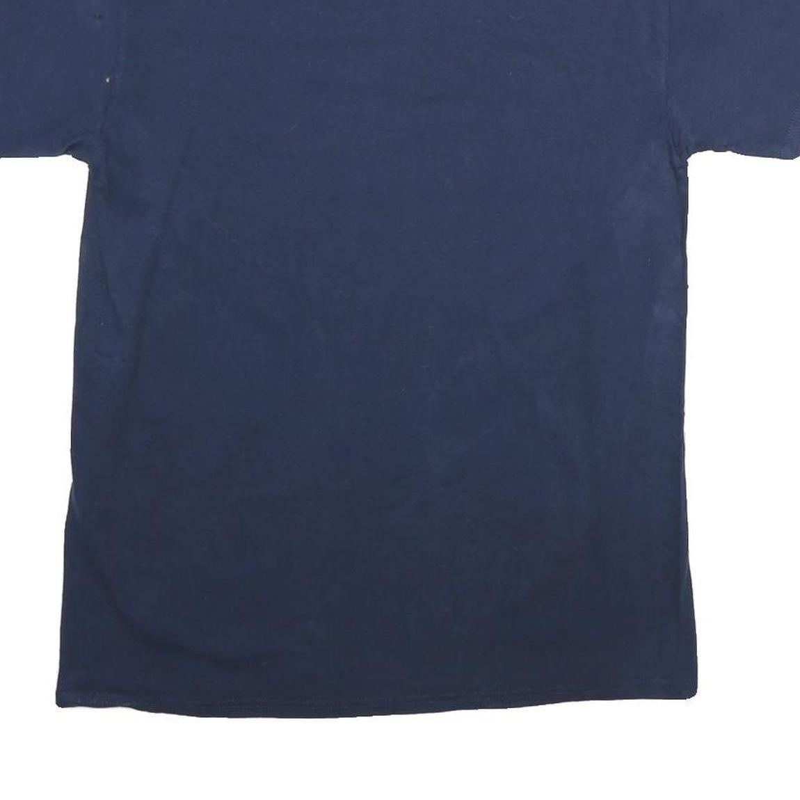 Crafted from soft cotton, the fabric provides a comfortable and breathable fit suitable for everyday wear. The T-shirt offers a classic crew neck and short sleeves, with a regular fit that ensures ease of movement and a casual look. The back is plain navy blue, allowing the graphic front to stand out.