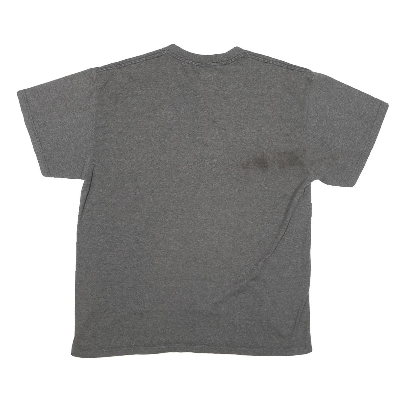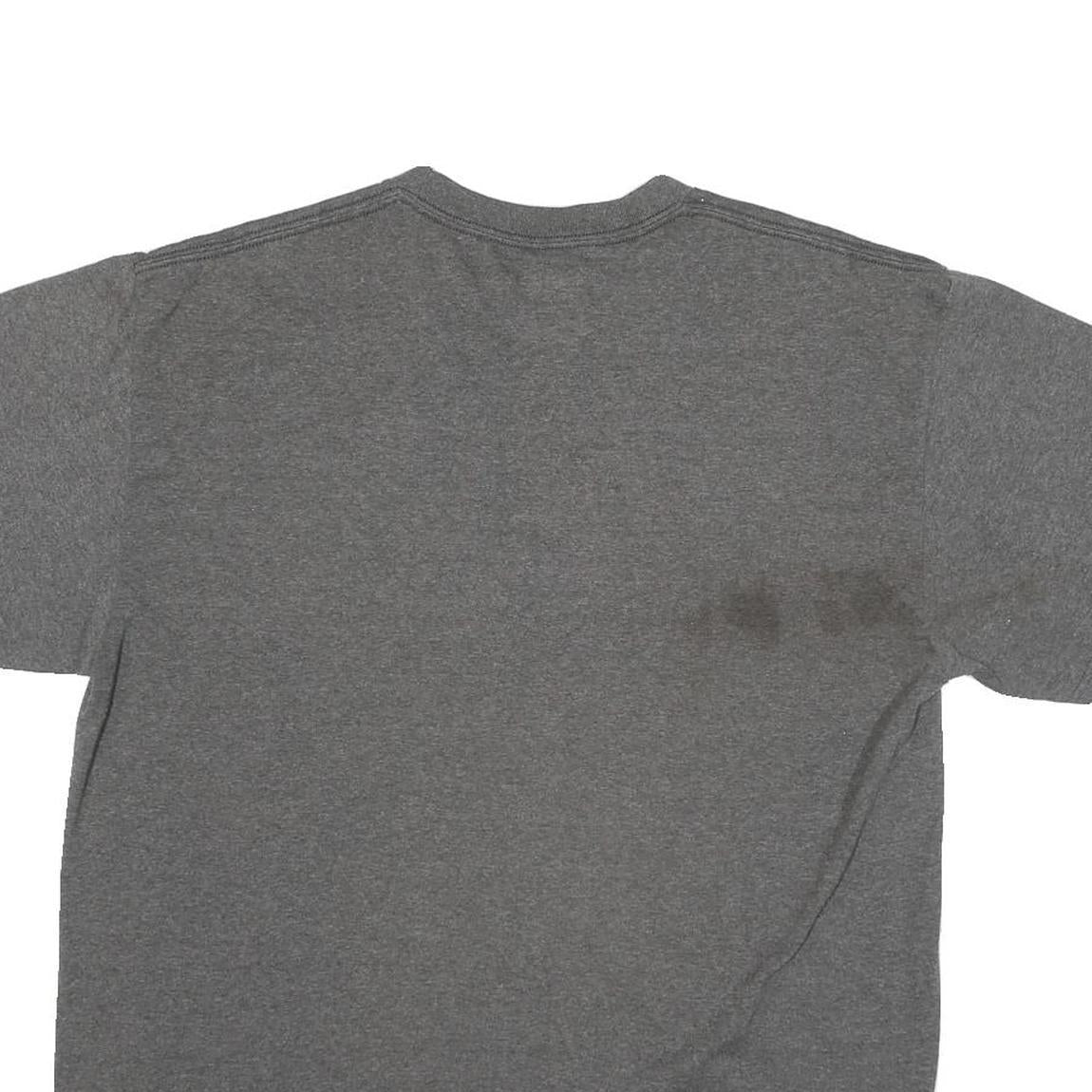 The cotton blend material provides comfortable wear with some softness and breathability. The shirt length sits at the waist with a regular fit. There is a noticeable dark mark stain visible on the lower right back, which impacts the overall condition. Suitable for sports fans or casual everyday wear.