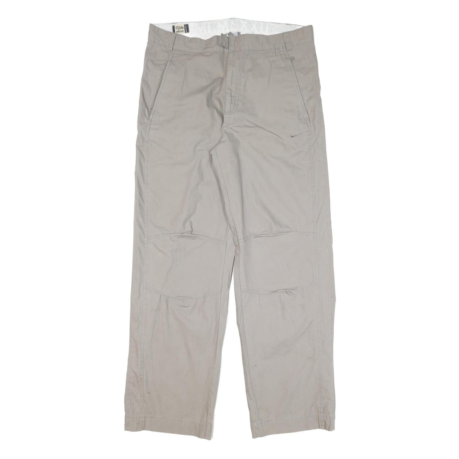 NIKE Mens Regular Fit Beige Cotton Blend Trousers W36 L32 Casual Zip Closure