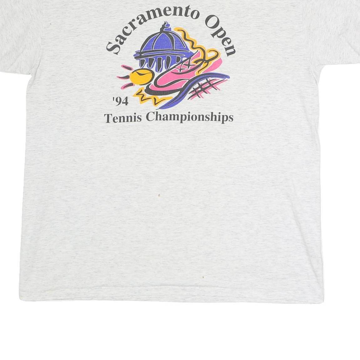 ONEITA Mens White Sacramento Open Tennis Championships Graphic T-Shirt XL Short