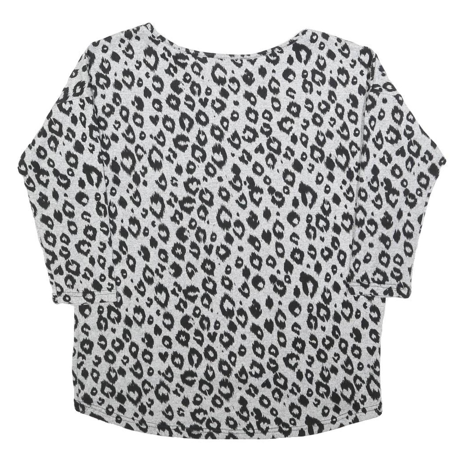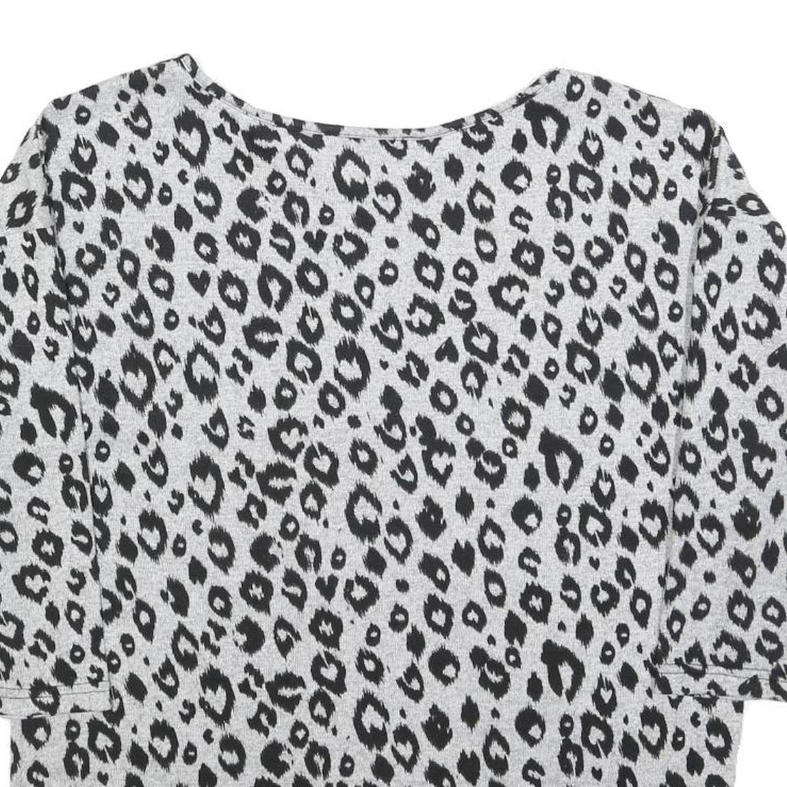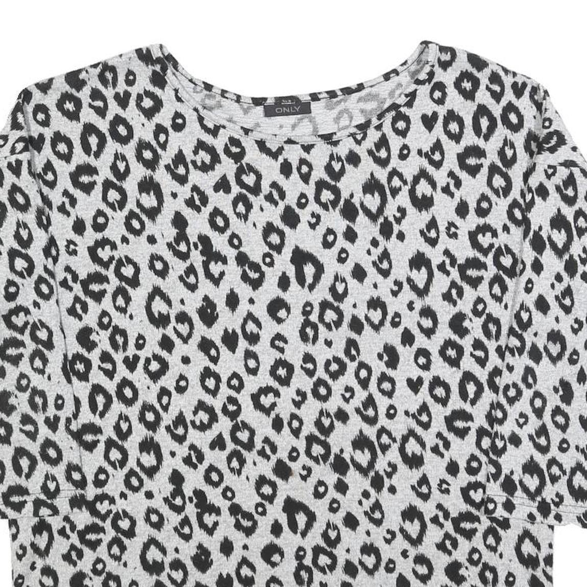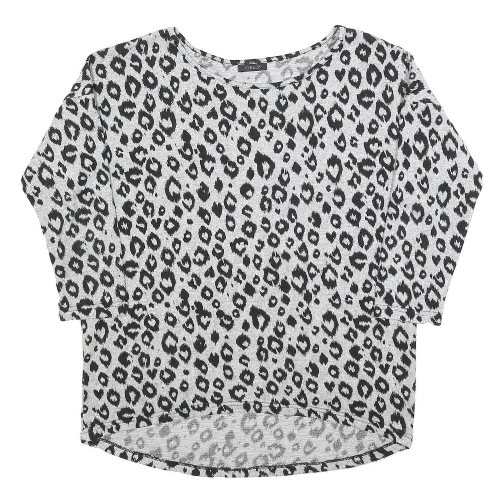 ONLY Womens Grey Black Animal Print Patterned Cotton Blend Jumper S Crew Neck