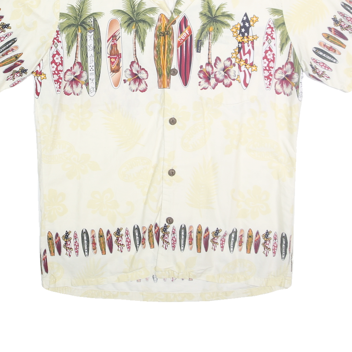 PALMWAVE Mens Cream & Multi Surfboard Print Rayon Shirt M Hawaiian Casual Summer
