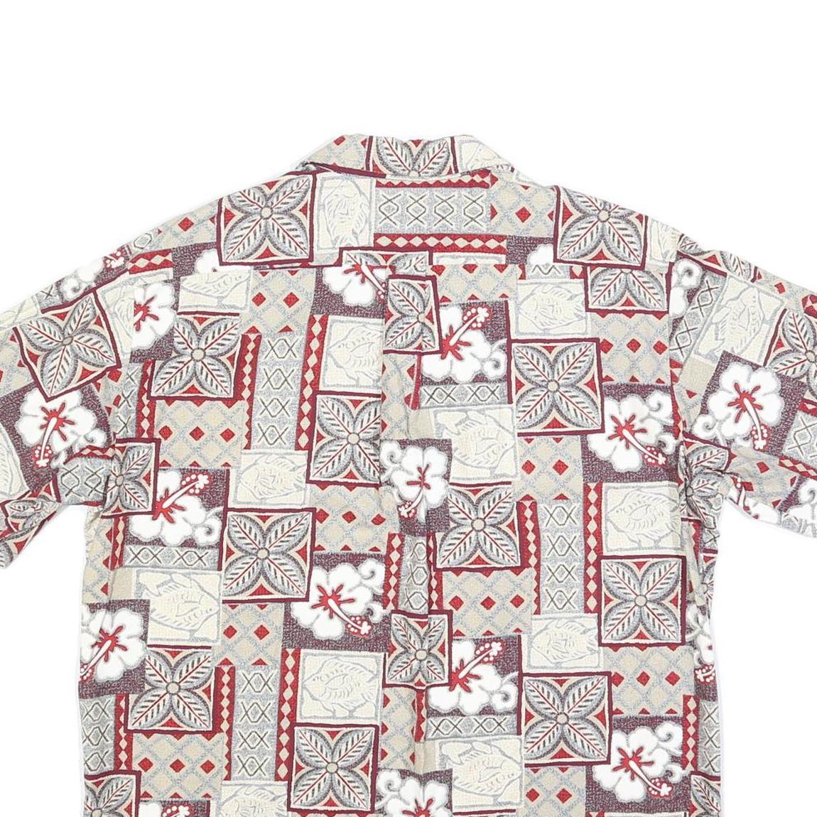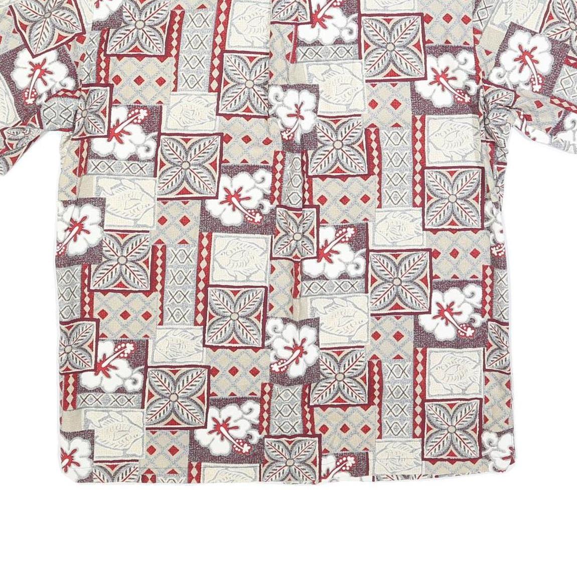 PARADISE BAY Mens Red & Beige Floral Pattern Shirt L Cotton Blend Hawaiian Style