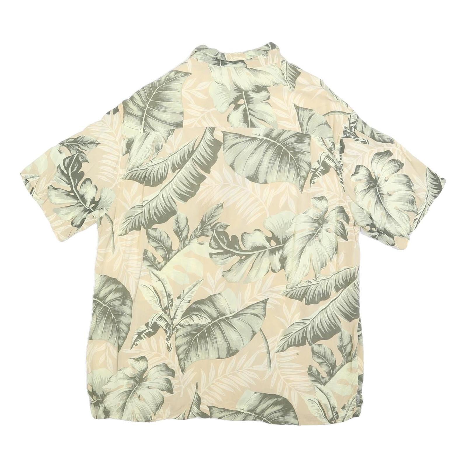PAVANA JACK Mens Beige & Green Rayon XL Tropical Leaf Print Shirt Summer Casual