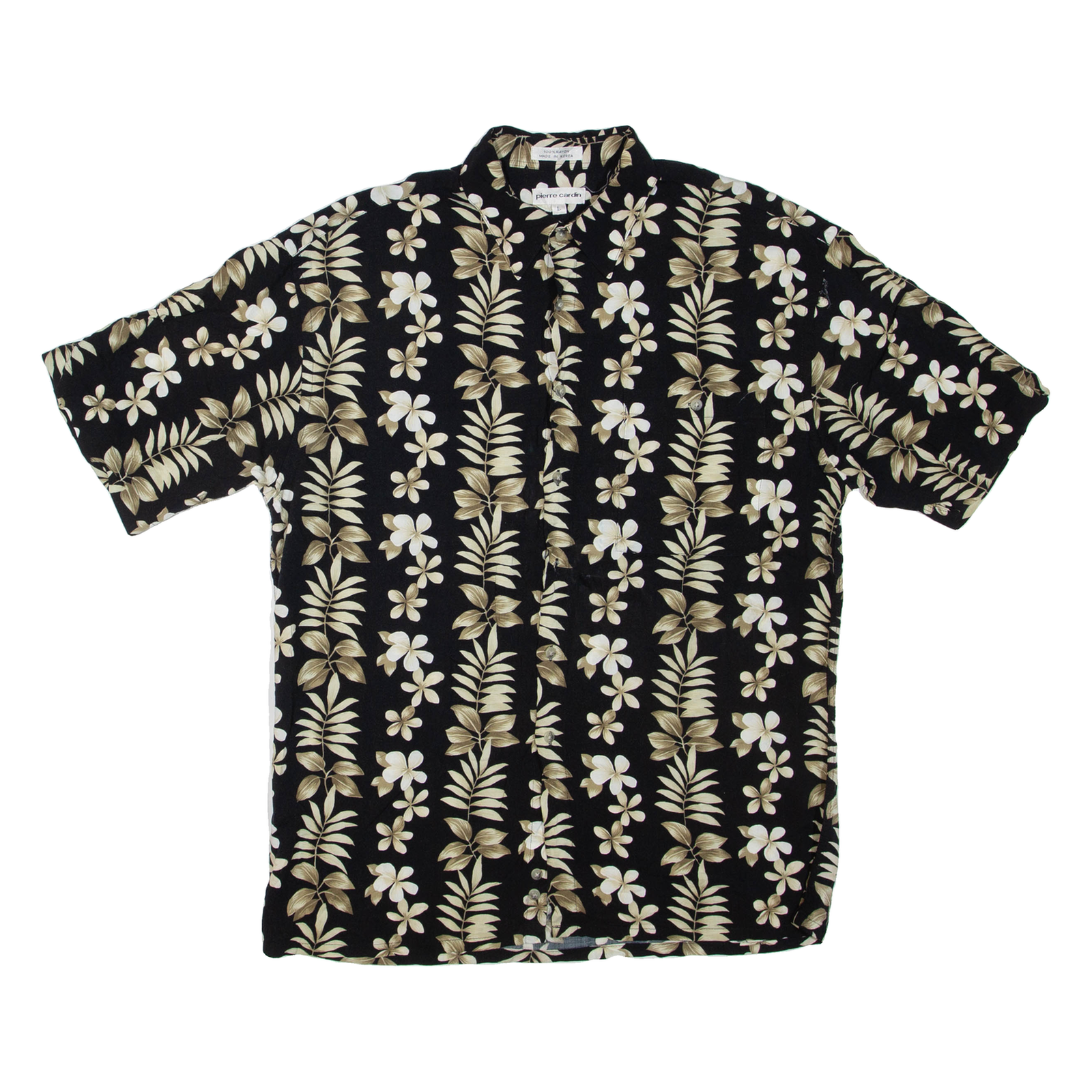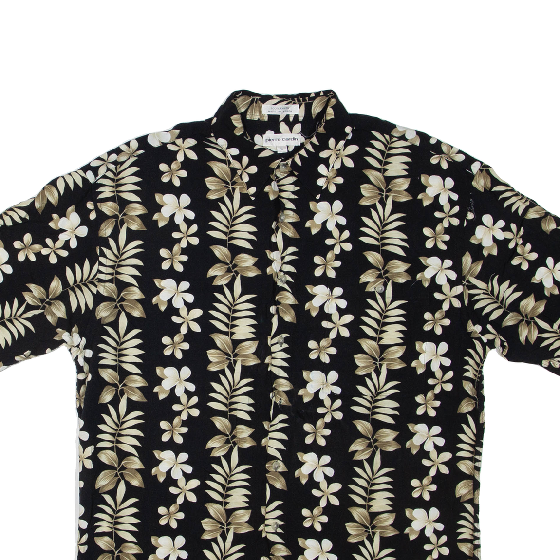 PIERRE CARDIN Mens Hawaiian Shirt Black Floral L