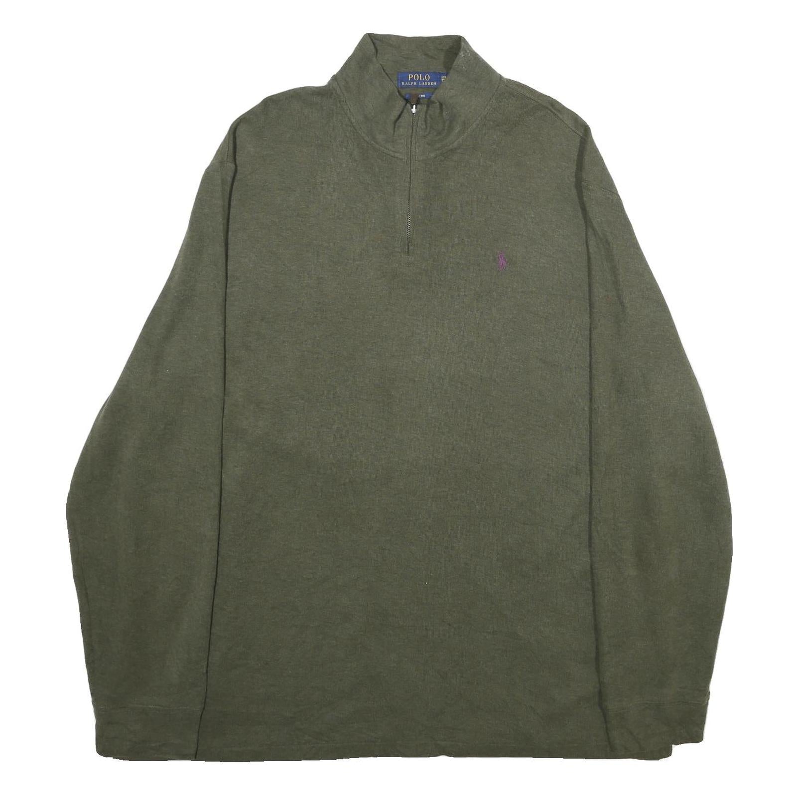 POLO RALPH LAUREN Mens Green 1/4 Zip Plain Cotton Jumper 2XL Casual Wear