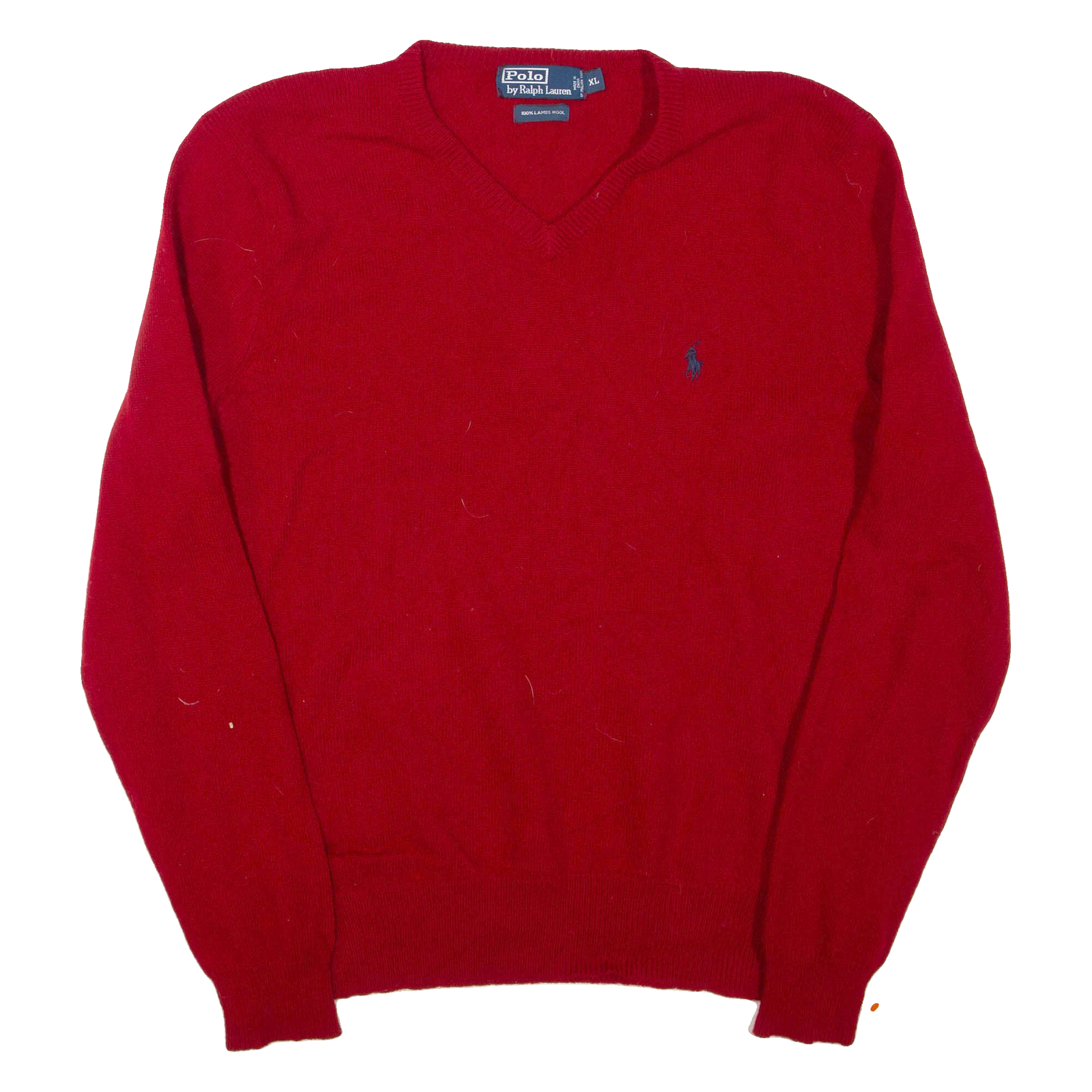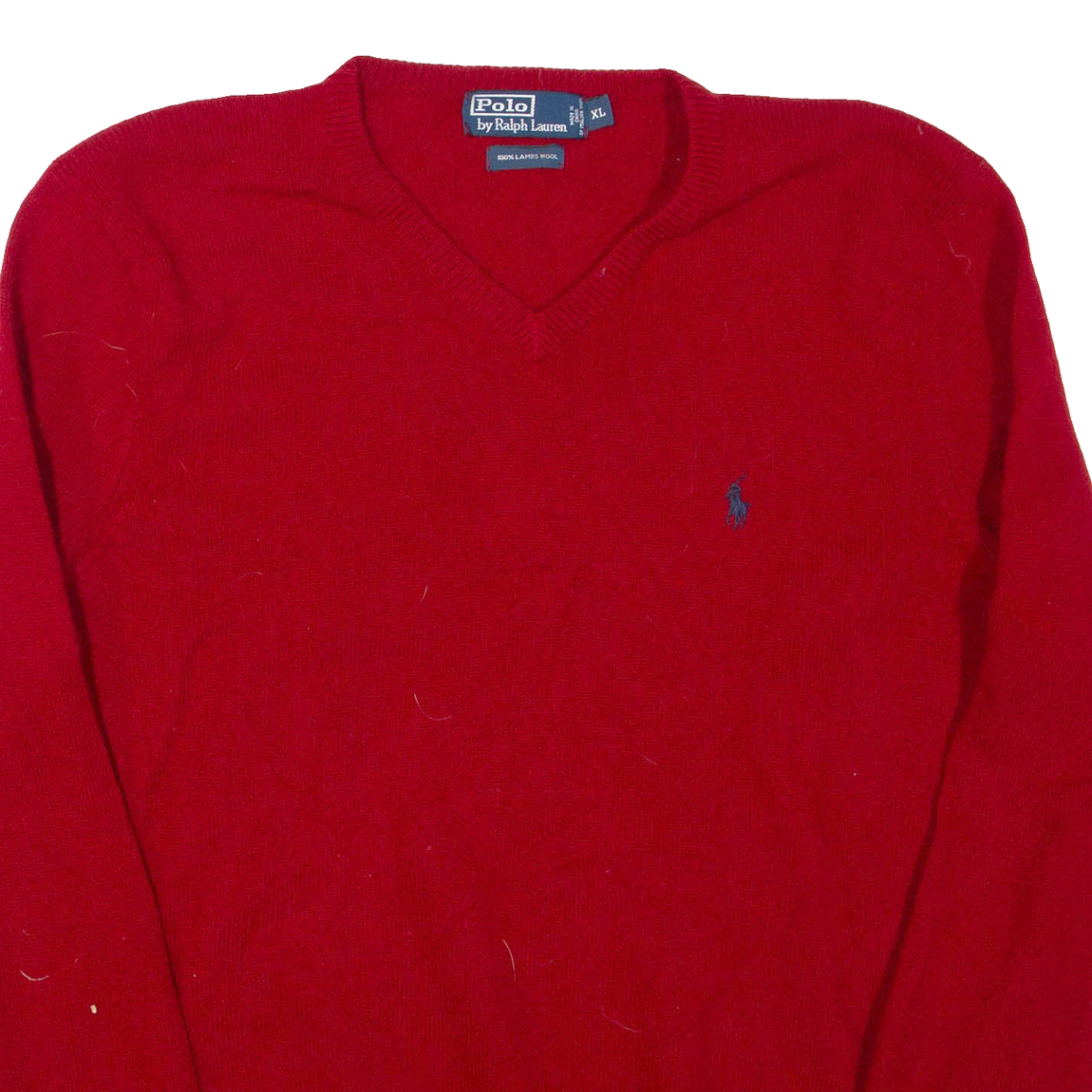 POLO RALPH LAUREN Mens Jumper Red V-Neck Tight Knit Wool XL