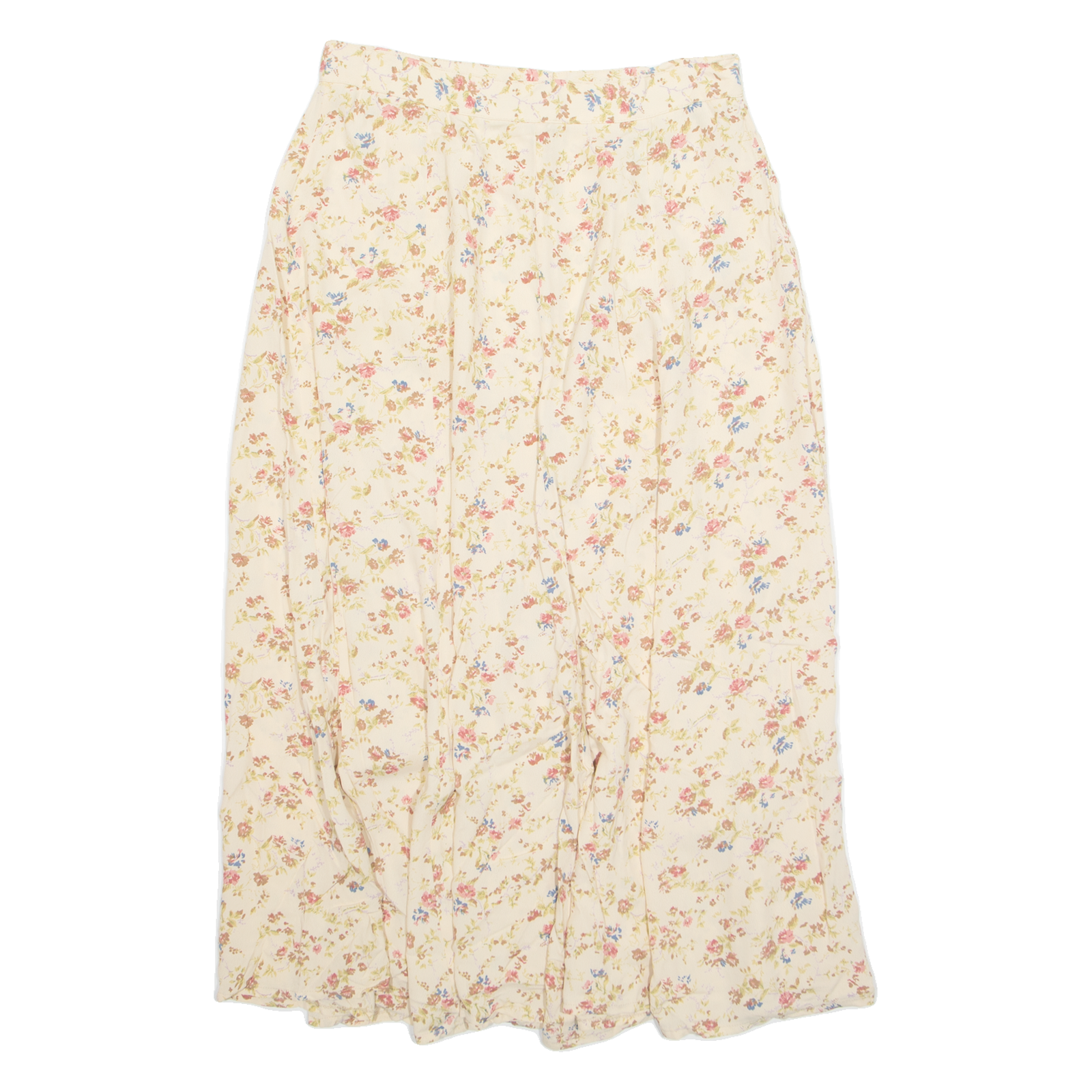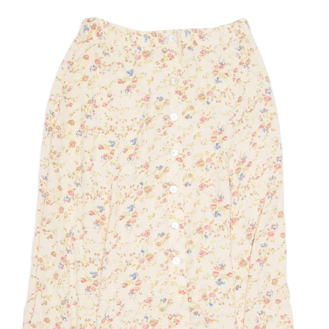 PRIVE Button Down Womens A-Line Skirt Cream Long Floral L