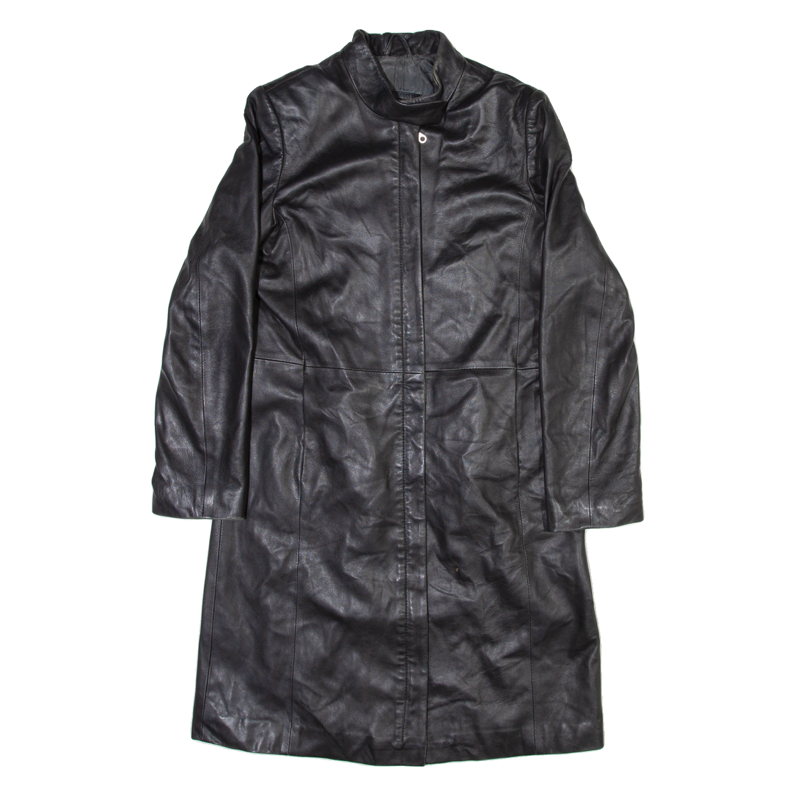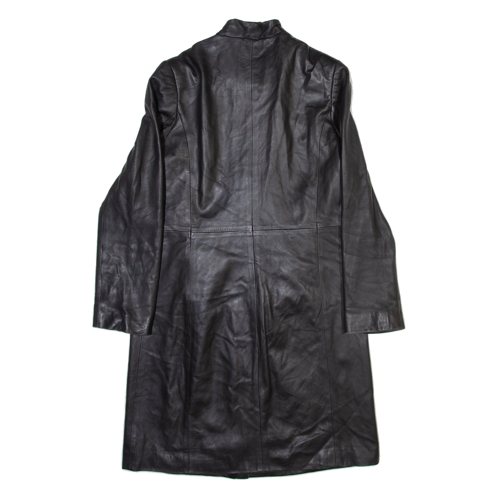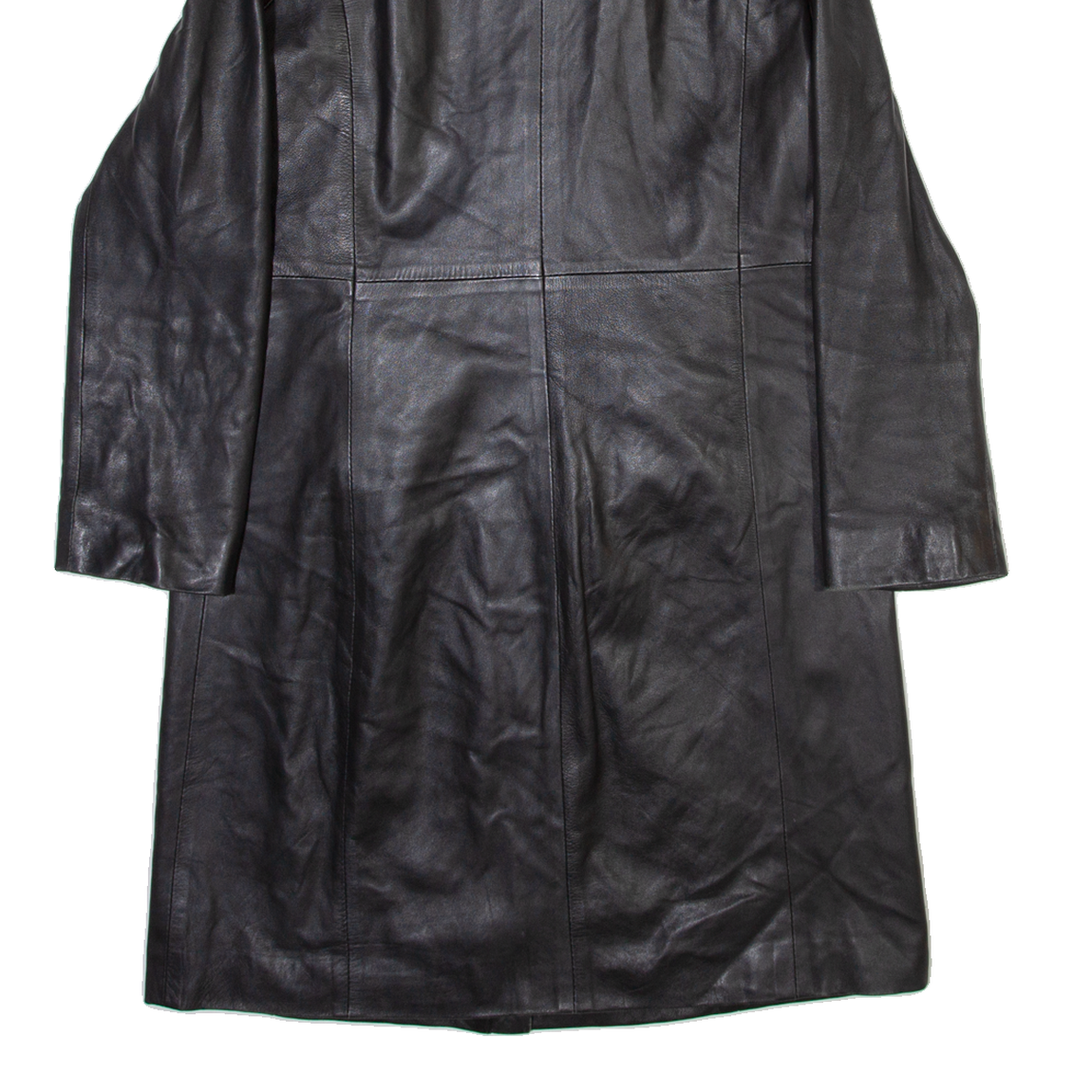 PROUD FOOT Padded Shoulders Womens Trench Jacket Black Leather M