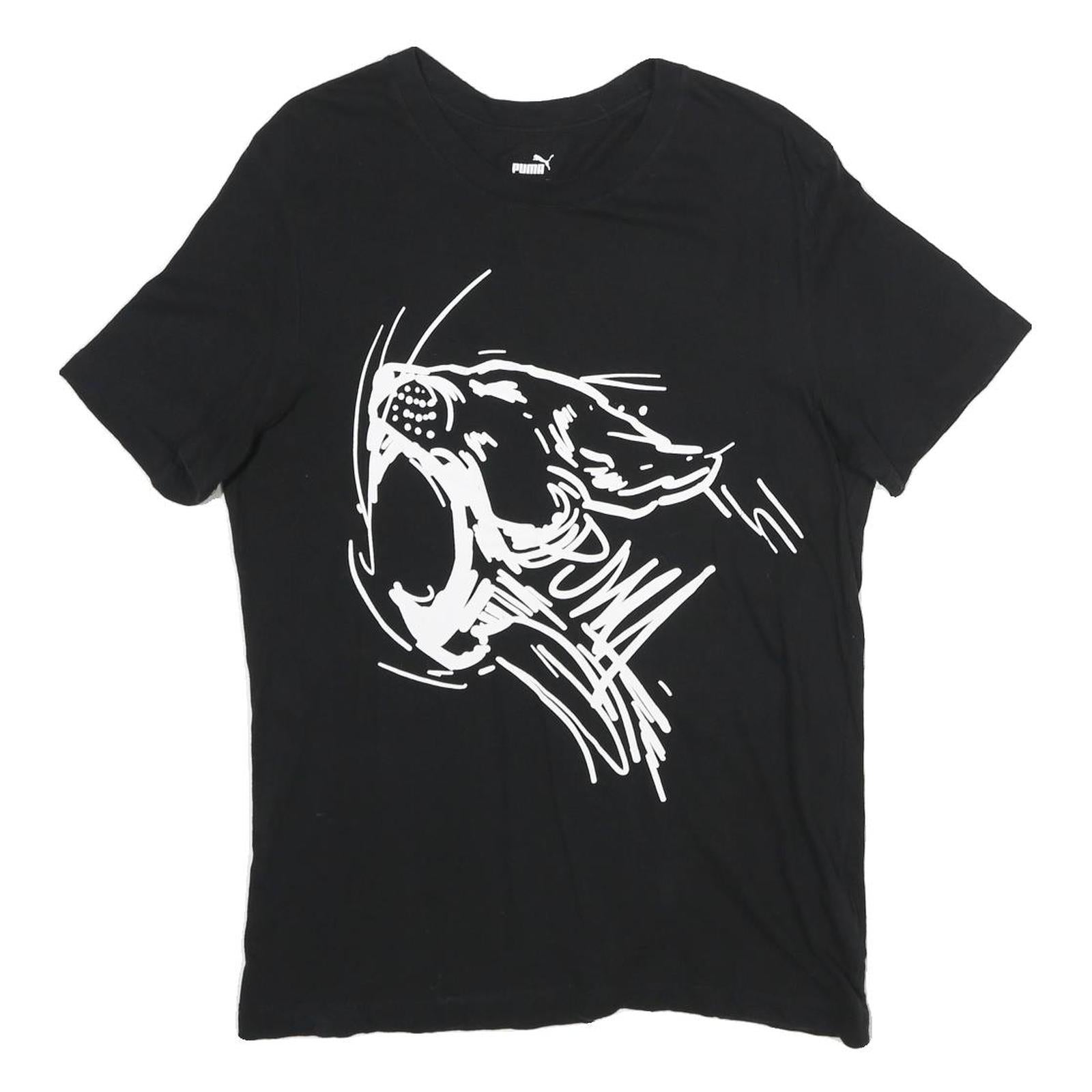 PUMA Mens Black Graphic T-Shirt M Short Sleeve Crew Neck Cotton Casual Sport