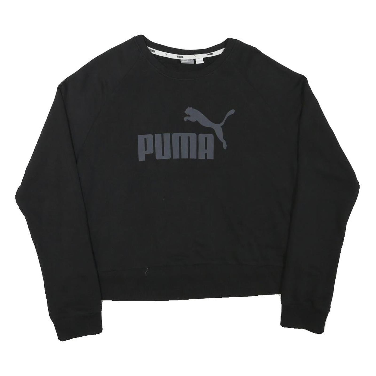 PUMA Womens Black Cotton Blend Crew Neck L Sweatshirt Logo Casual Pullover