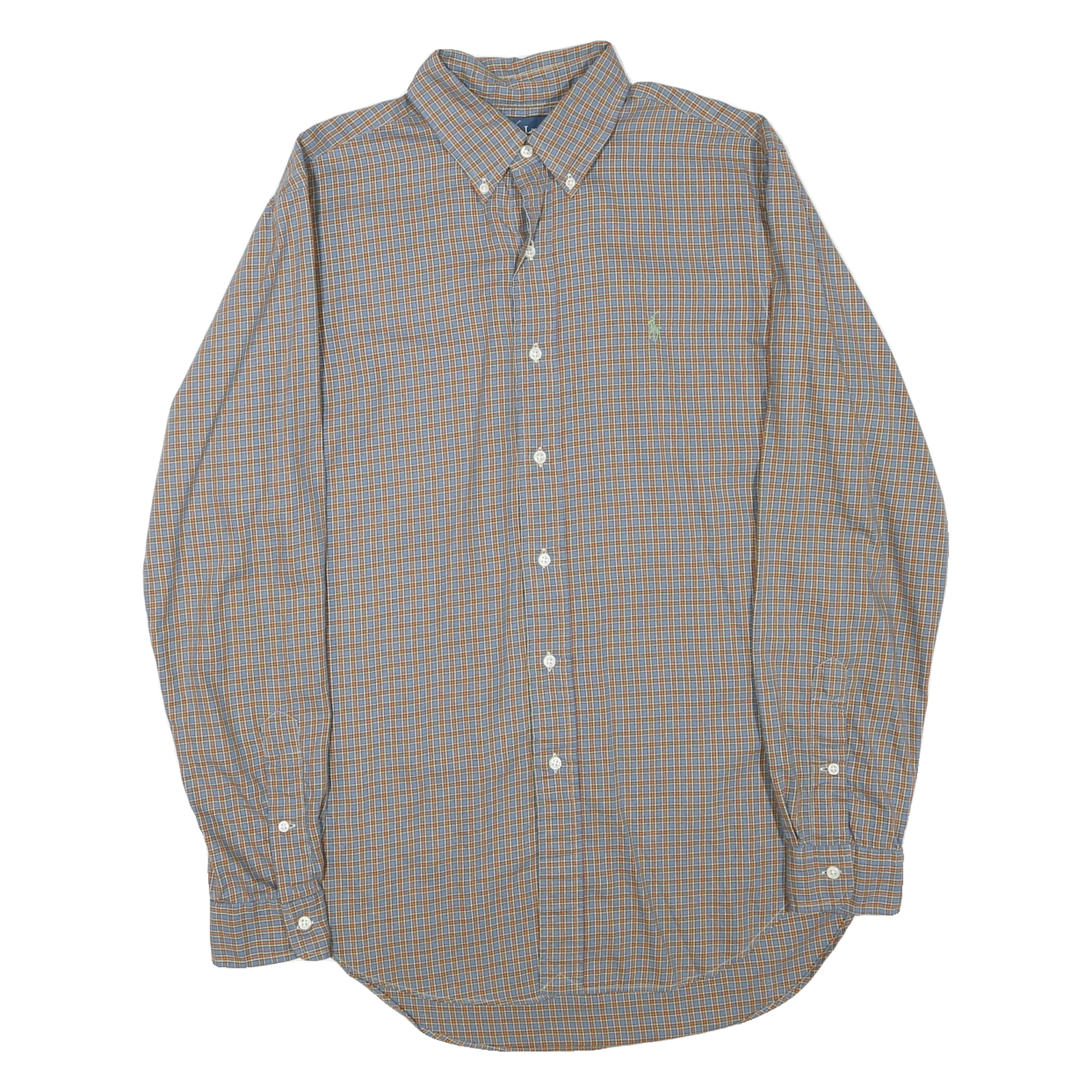 RALPH LAUREN Mens Blue & Orange Check Shirt M Button Down Classic Fit