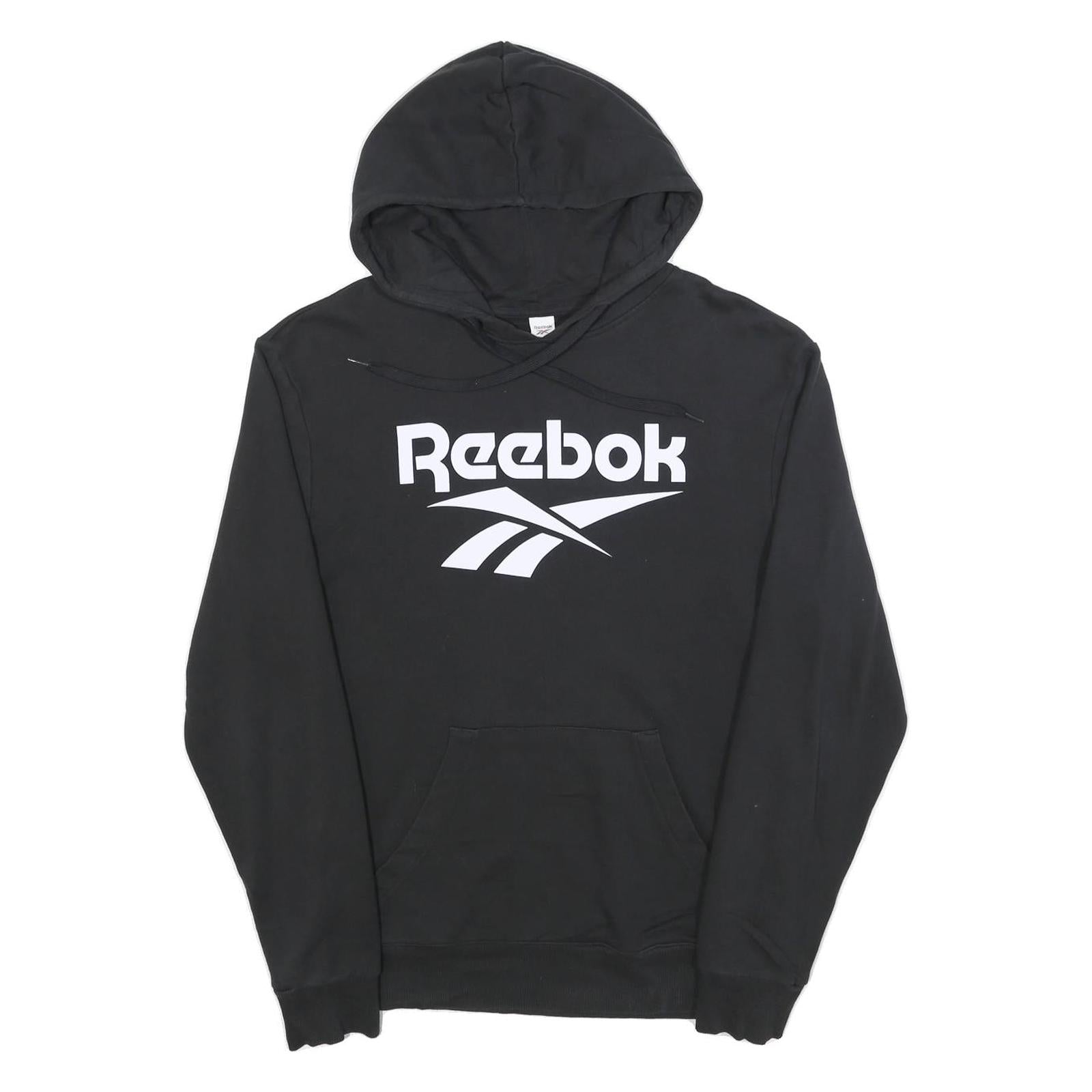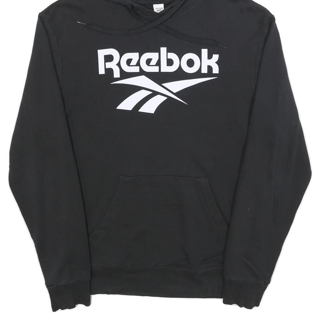 REEBOK Mens Black Hoodie M Cotton Blend Pullover Logo Print Casual