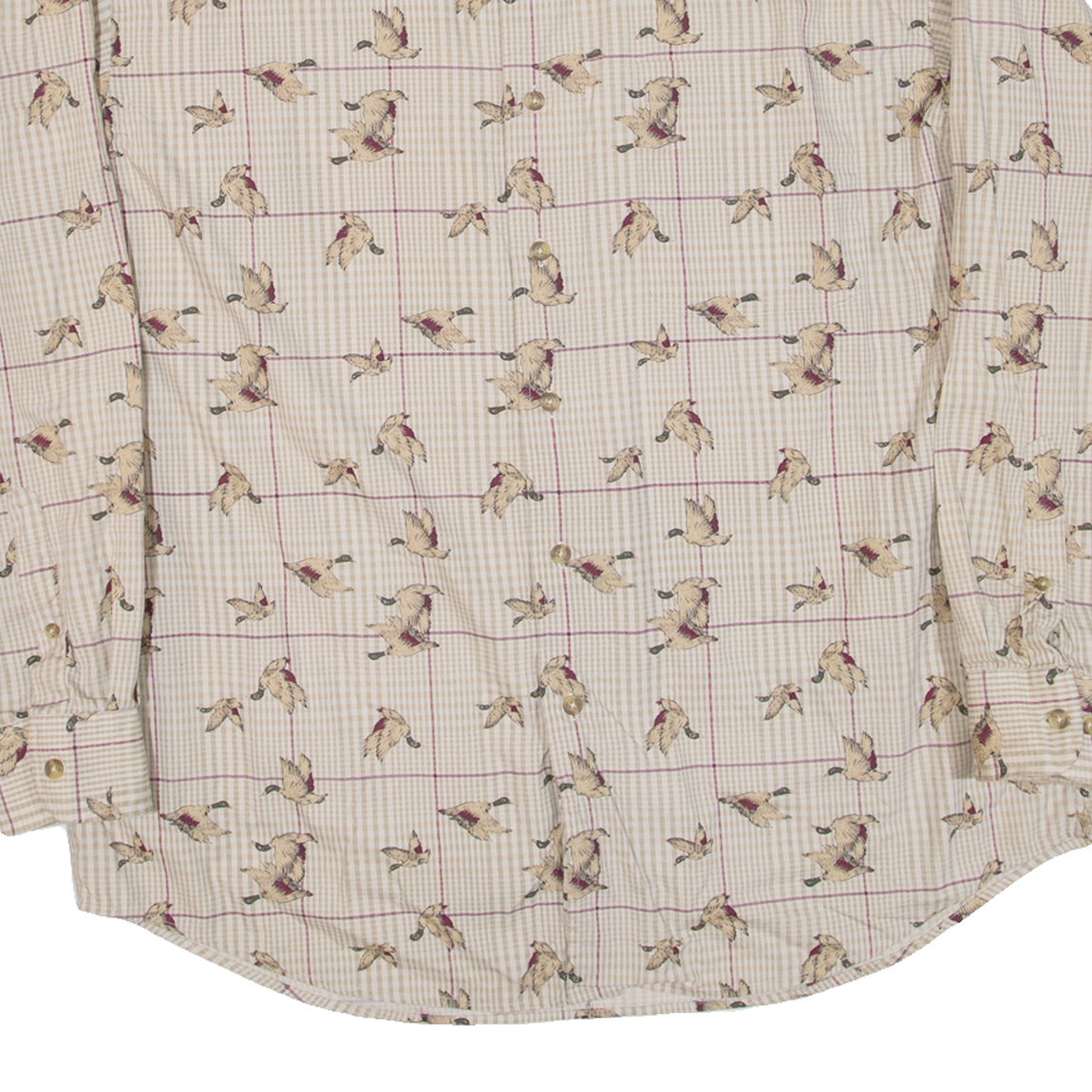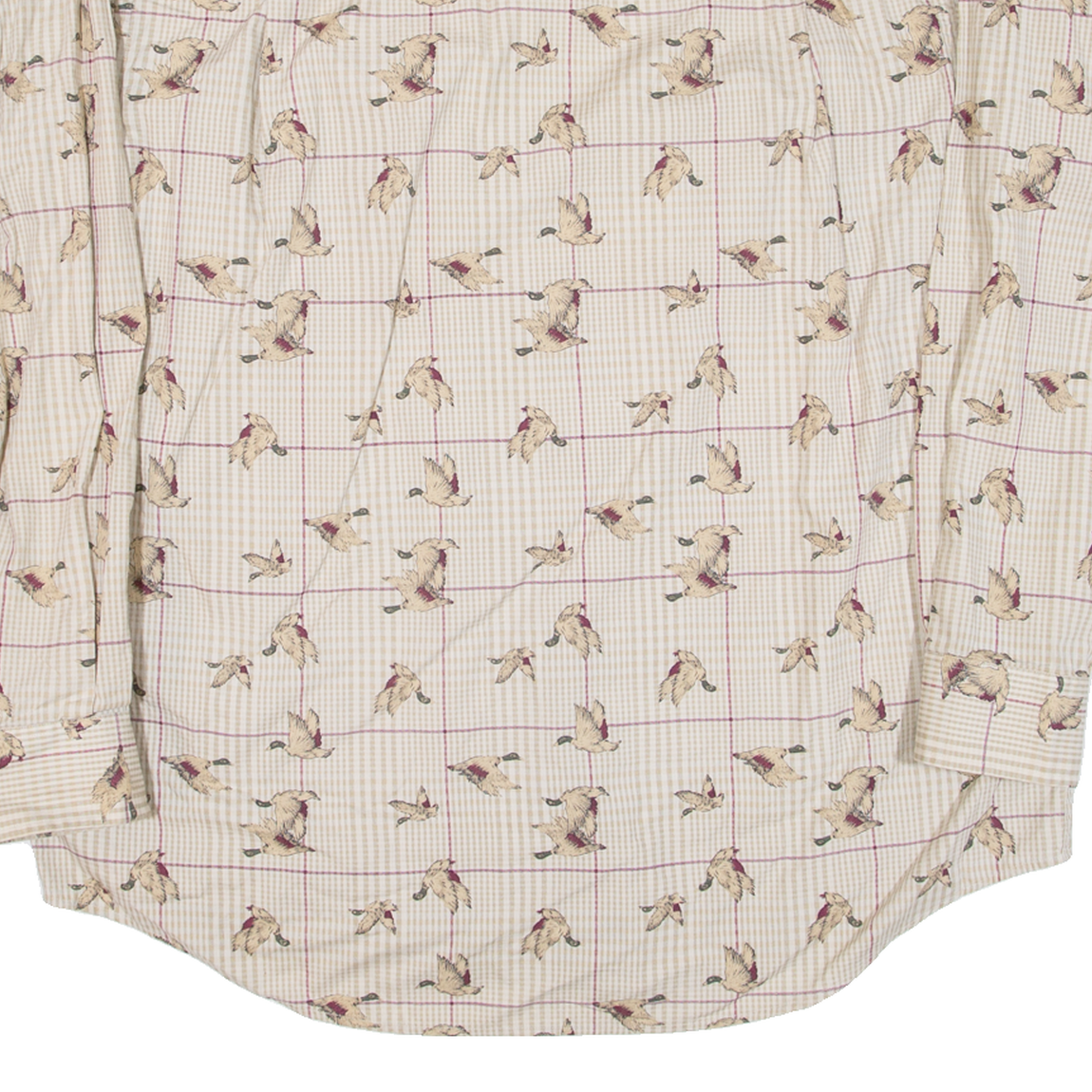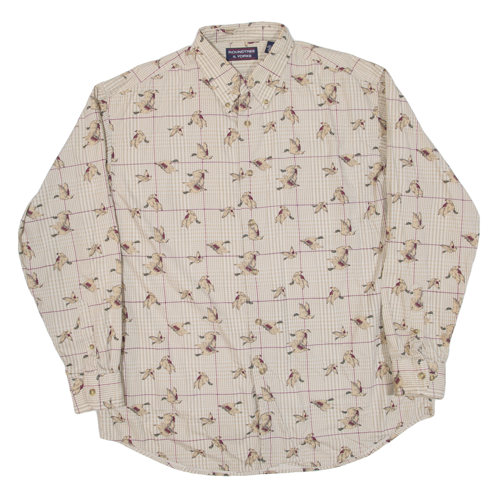 ROUNDTREE & YORKE Birds Mens Shirt Beige Long Sleeve L