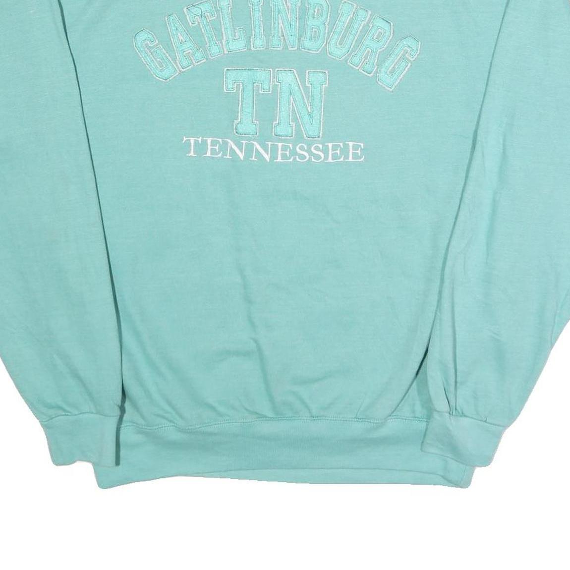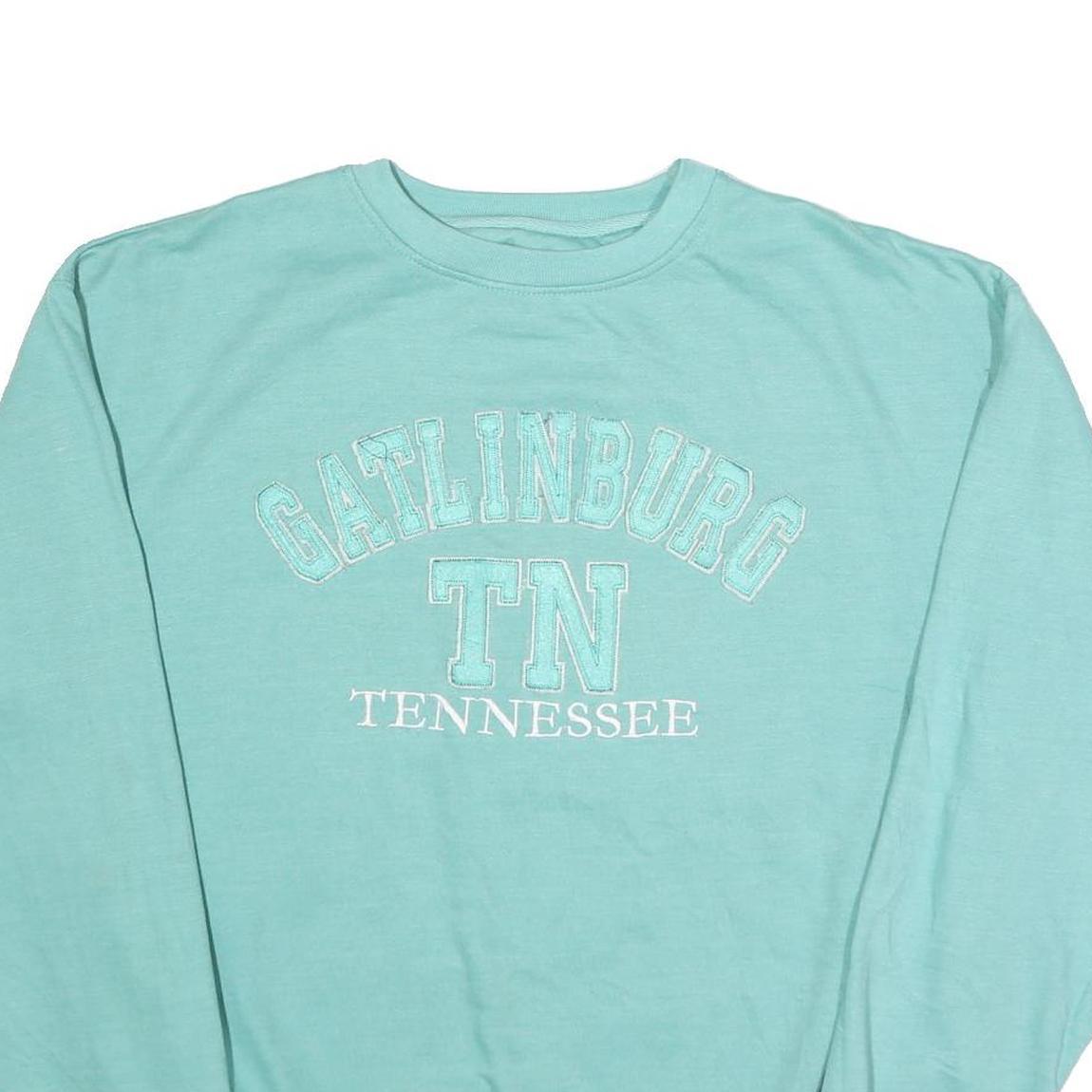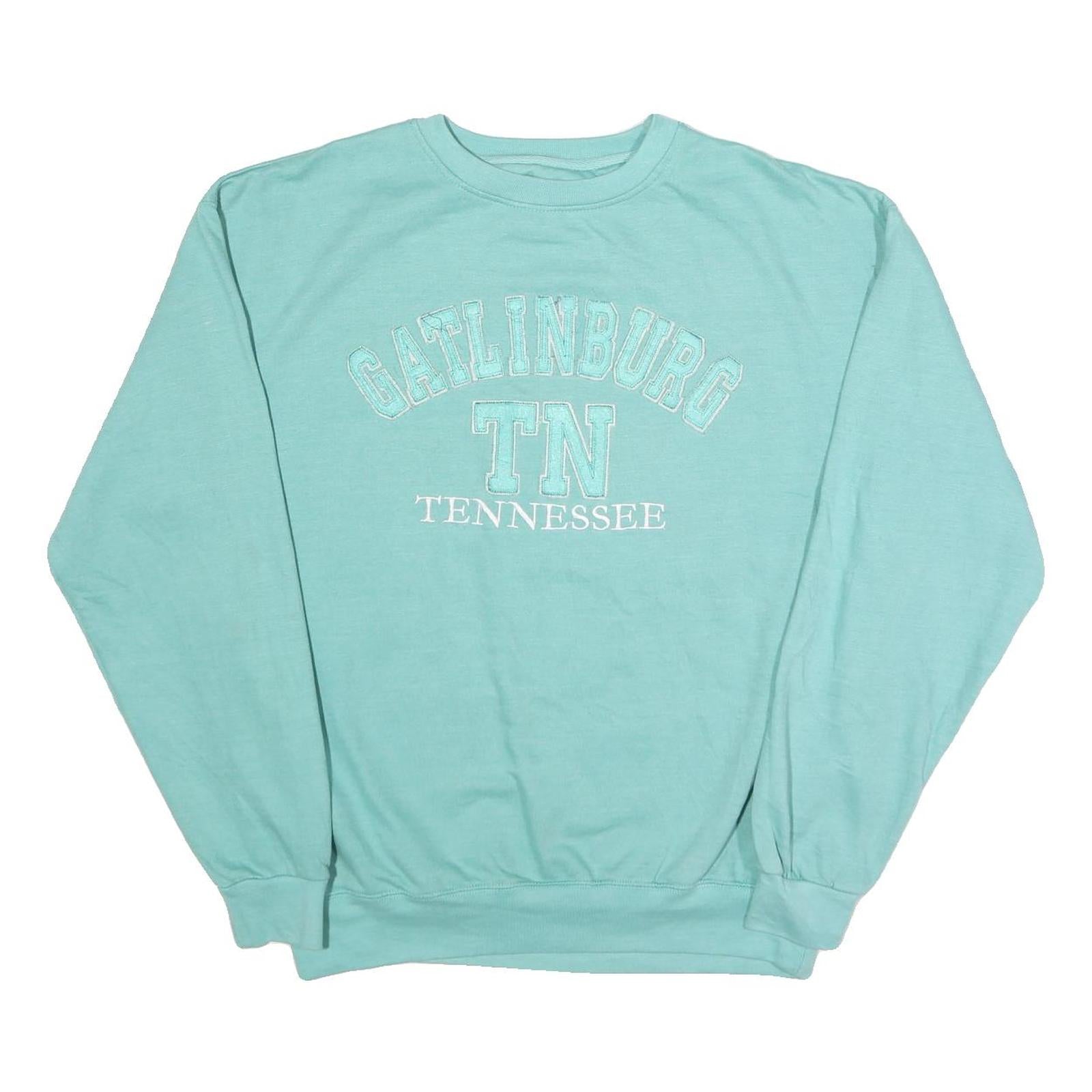 This men's sweatshirt from SANJEEV OF GATLINBURG showcases a soft blue colour with a classic crew neck design. The front features 'GATLINBURG TN TENNESSEE' embroidered in matching shades, adding a distinctive vintage-inspired graphic touch.