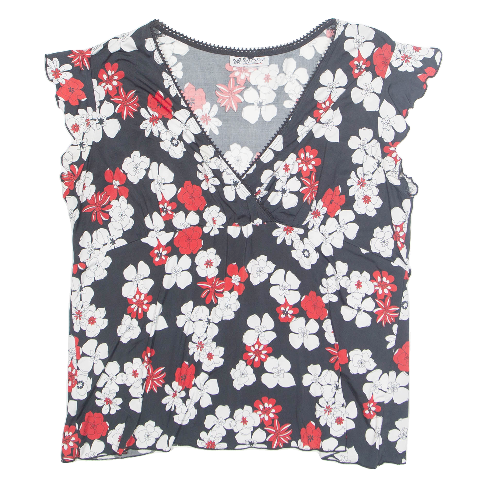 SELF-ESTEEM Womens Printed Blouse Black V-Neck Floral XL