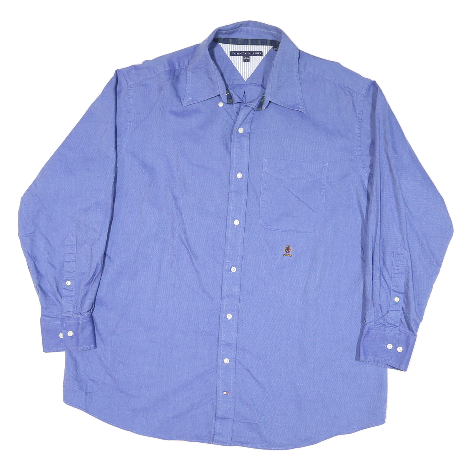 TOMMY HILFIGER Mens Blue Casual Shirt L Button Down Pocket Cotton Blend Classic