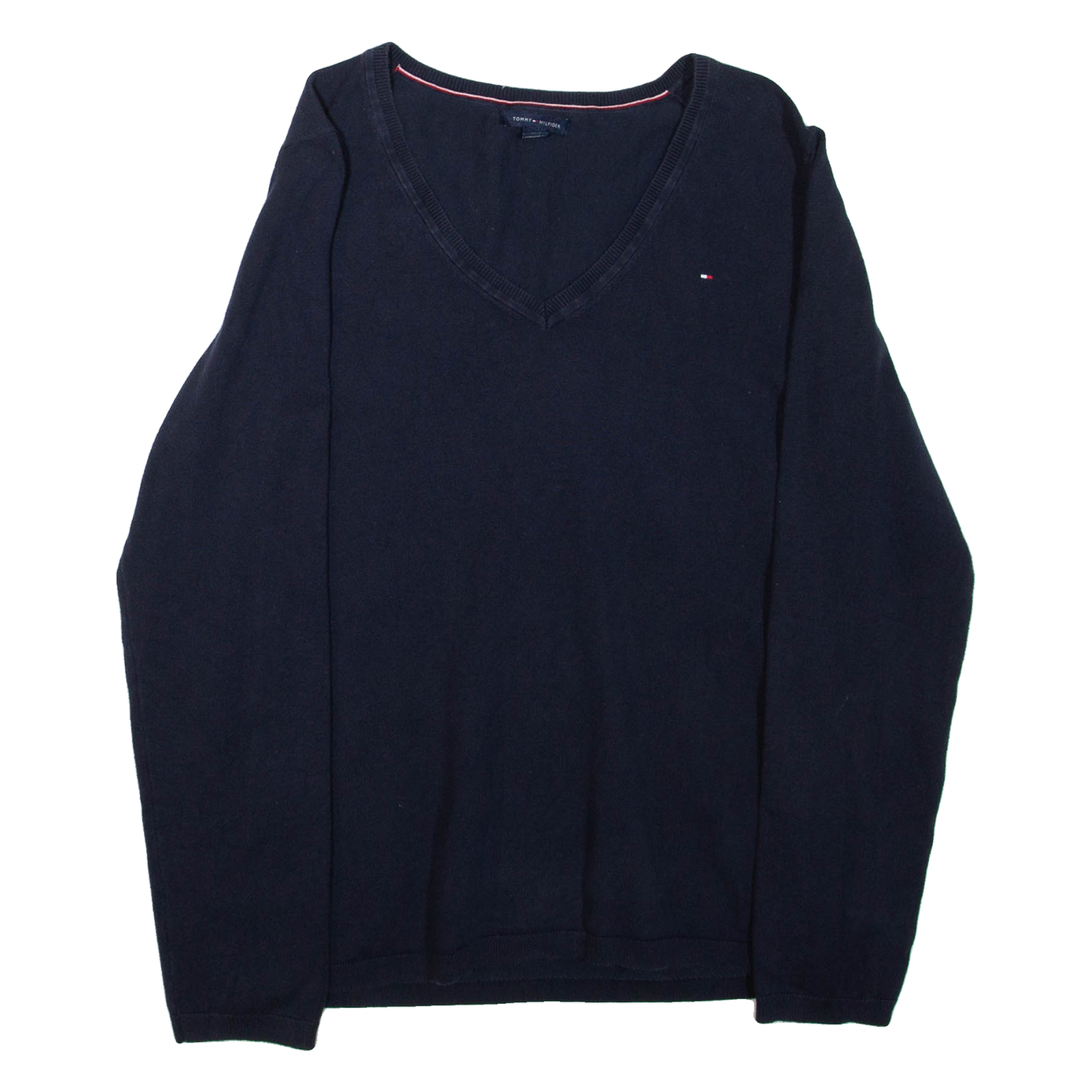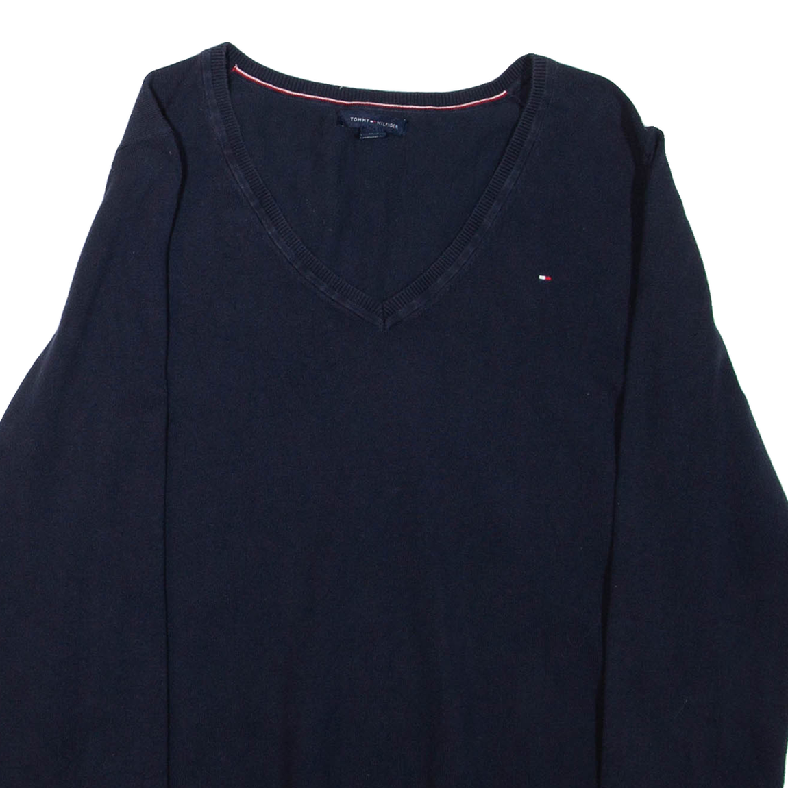 TOMMY HILFIGER Mens Jumper Blue V-Neck Tight Knit L