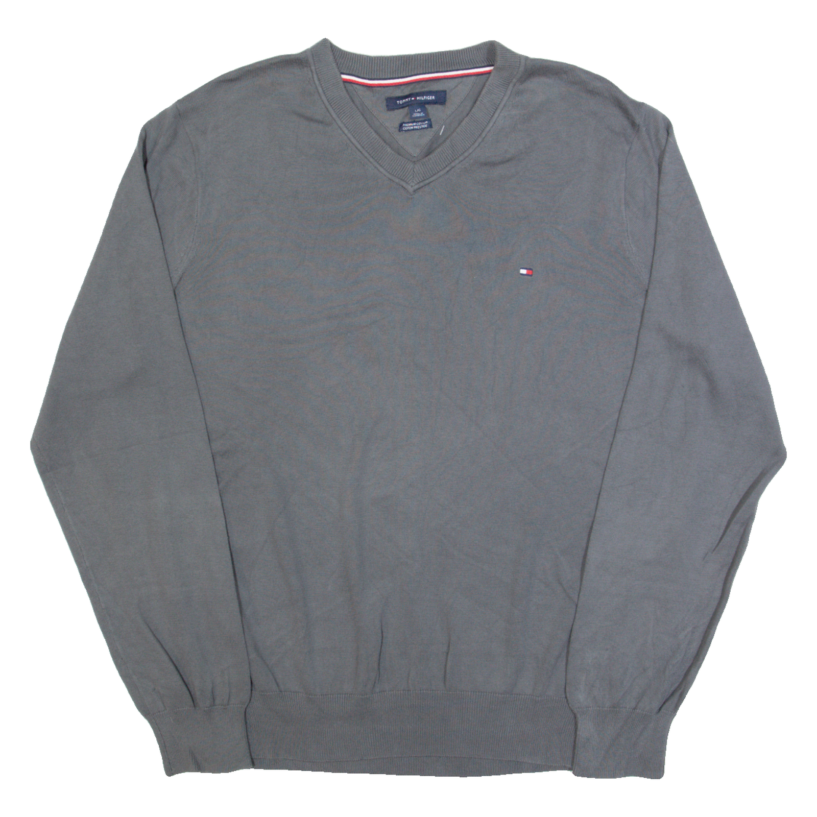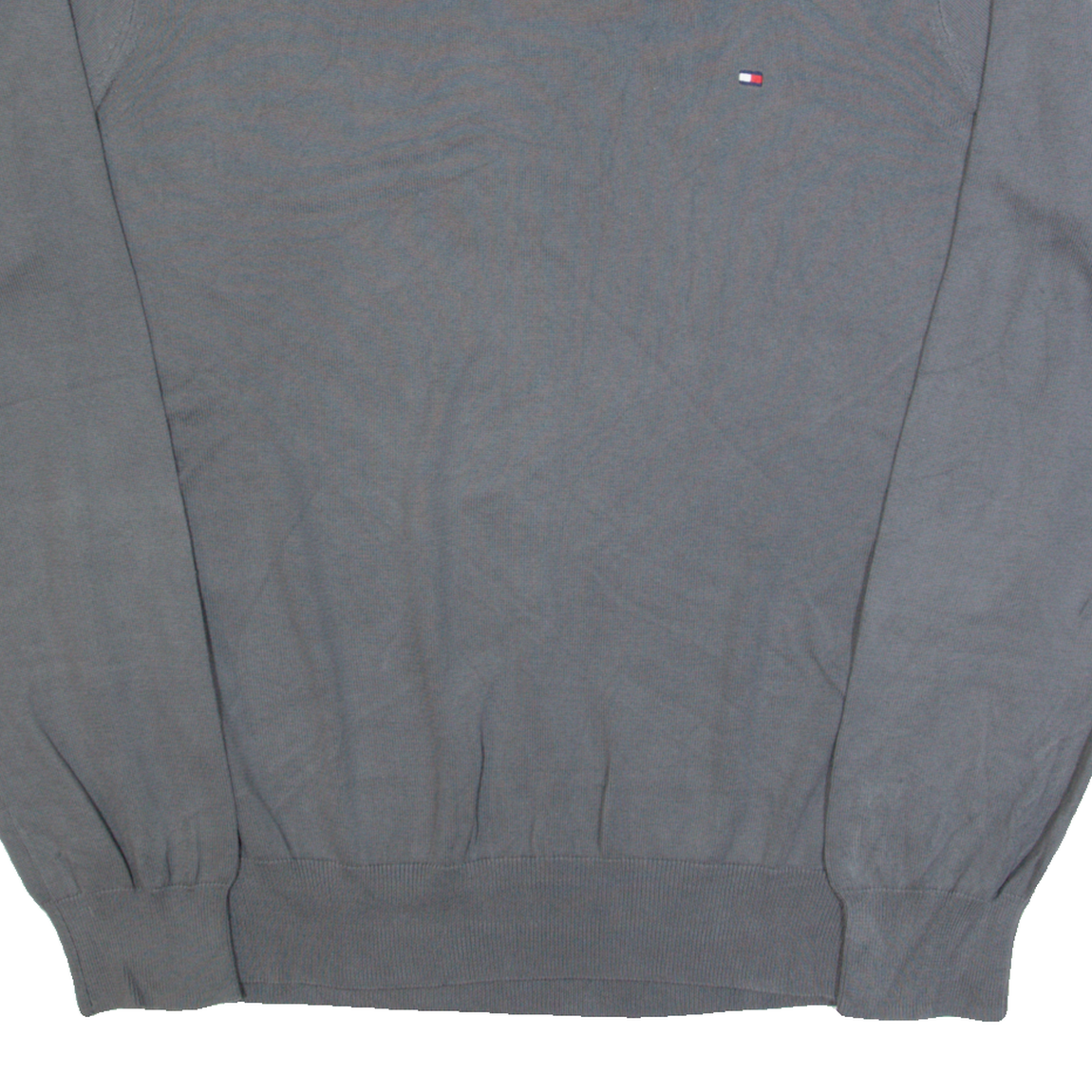 TOMMY HILFIGER Mens Jumper Grey V-Neck Tight Knit L