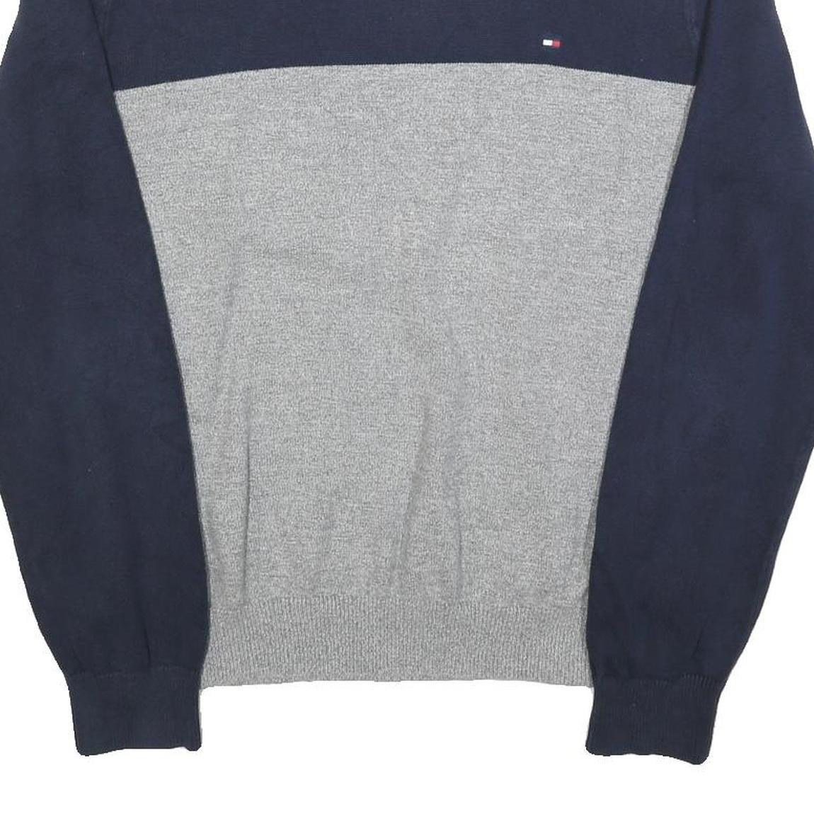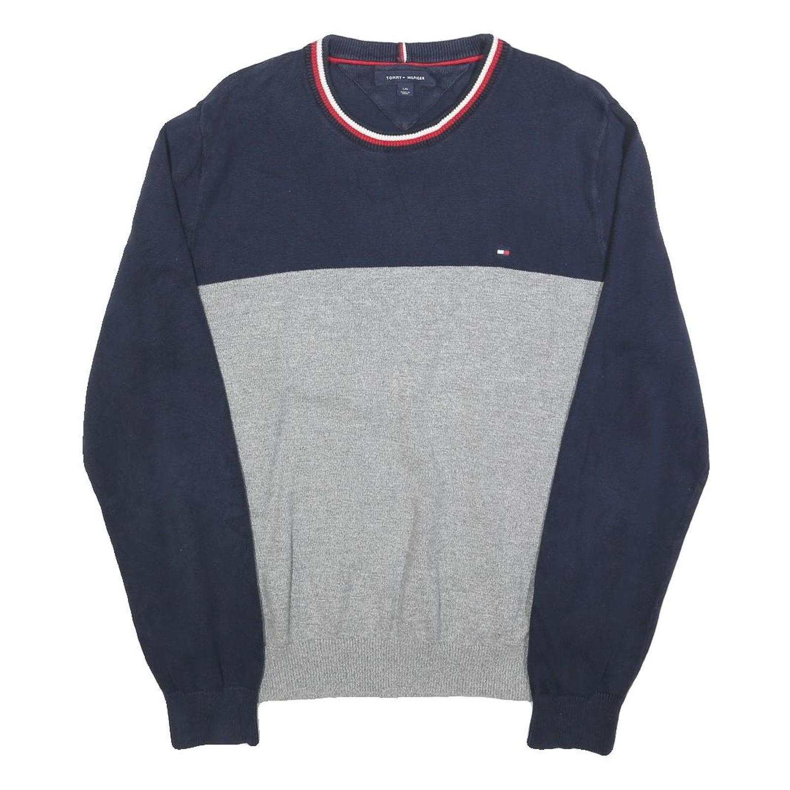 TOMMY HILFIGER Mens Navy & Grey Colourblock Plain Crew Neck Basic Knit Jumper L