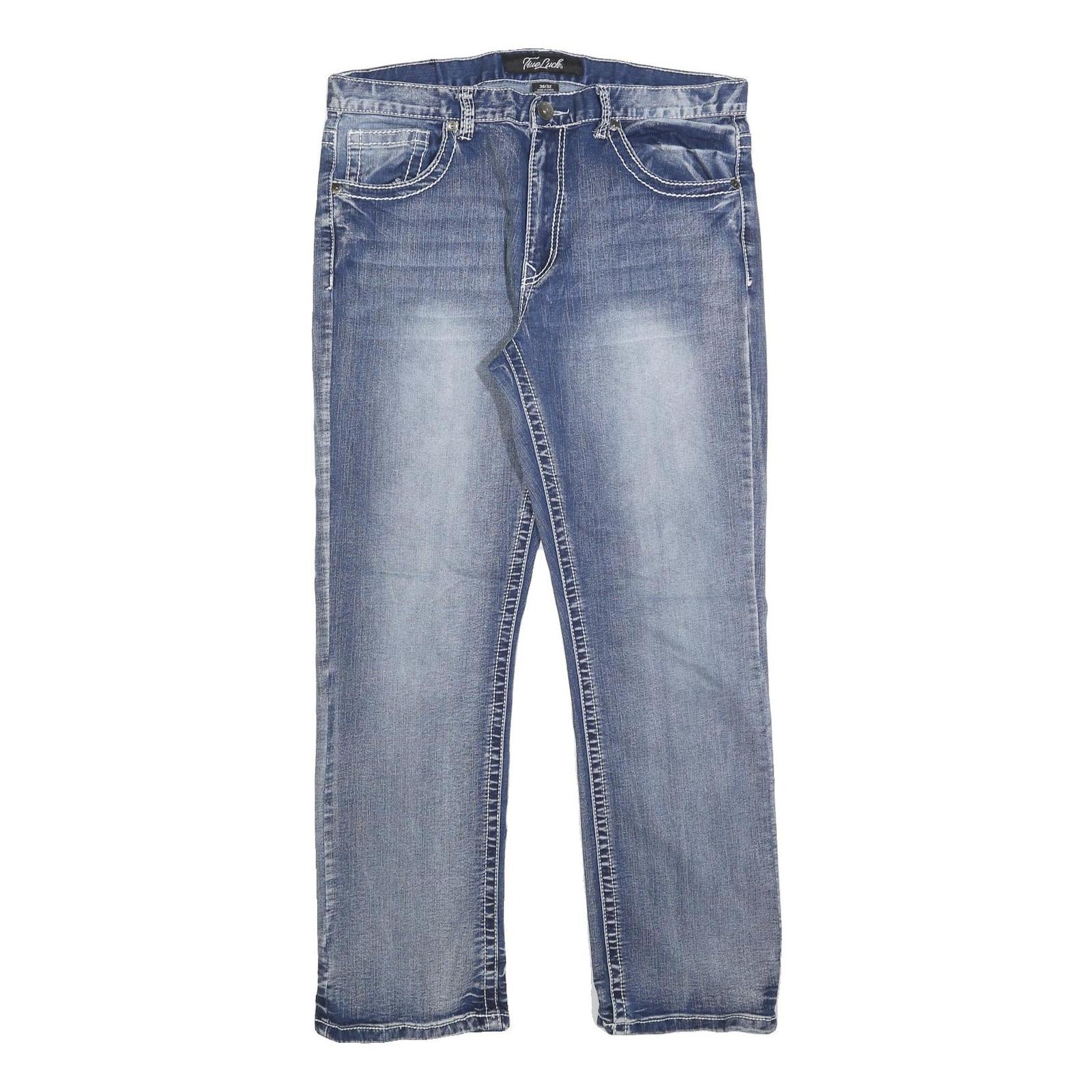 TRUE LUCK Mens Jeans Blue Regular Straight Denim Medium W36 L32 Stylish Casual
