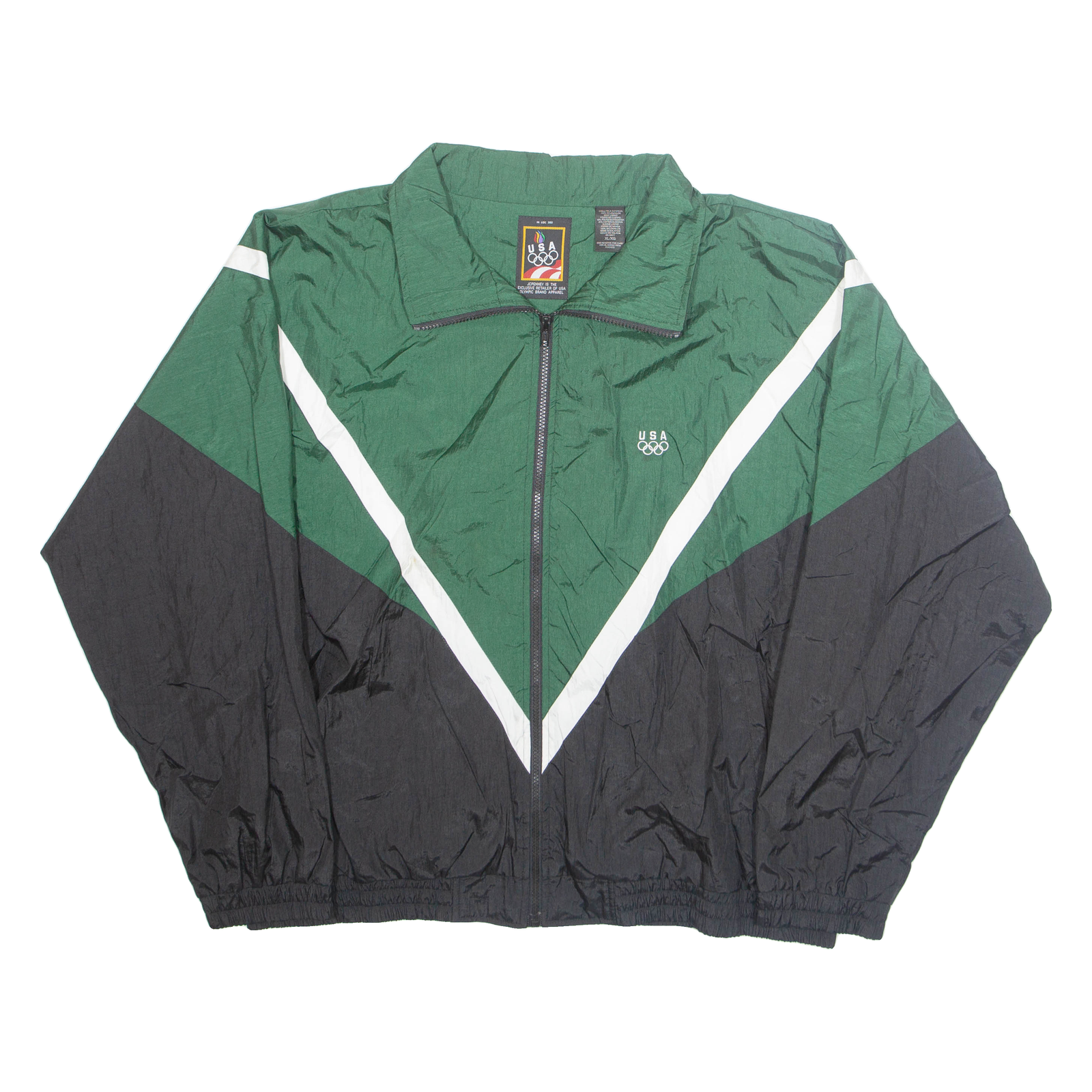 USA Mens Track Jacket Green Nylon USA XL