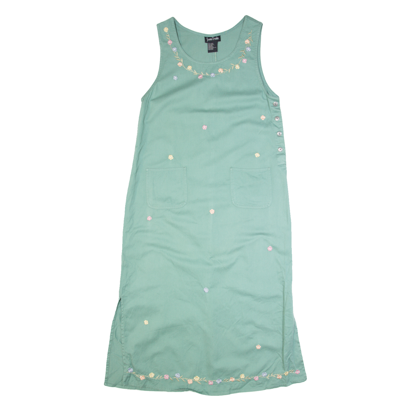 We understand that clothing sizes can vary depending on the brand, style, and age of the item. Therefore, along with providing the size stated in the label, we hand measure all our items to give you the exact measurements. Unless stated otherwise all measurements are taken with the item un-stretched.