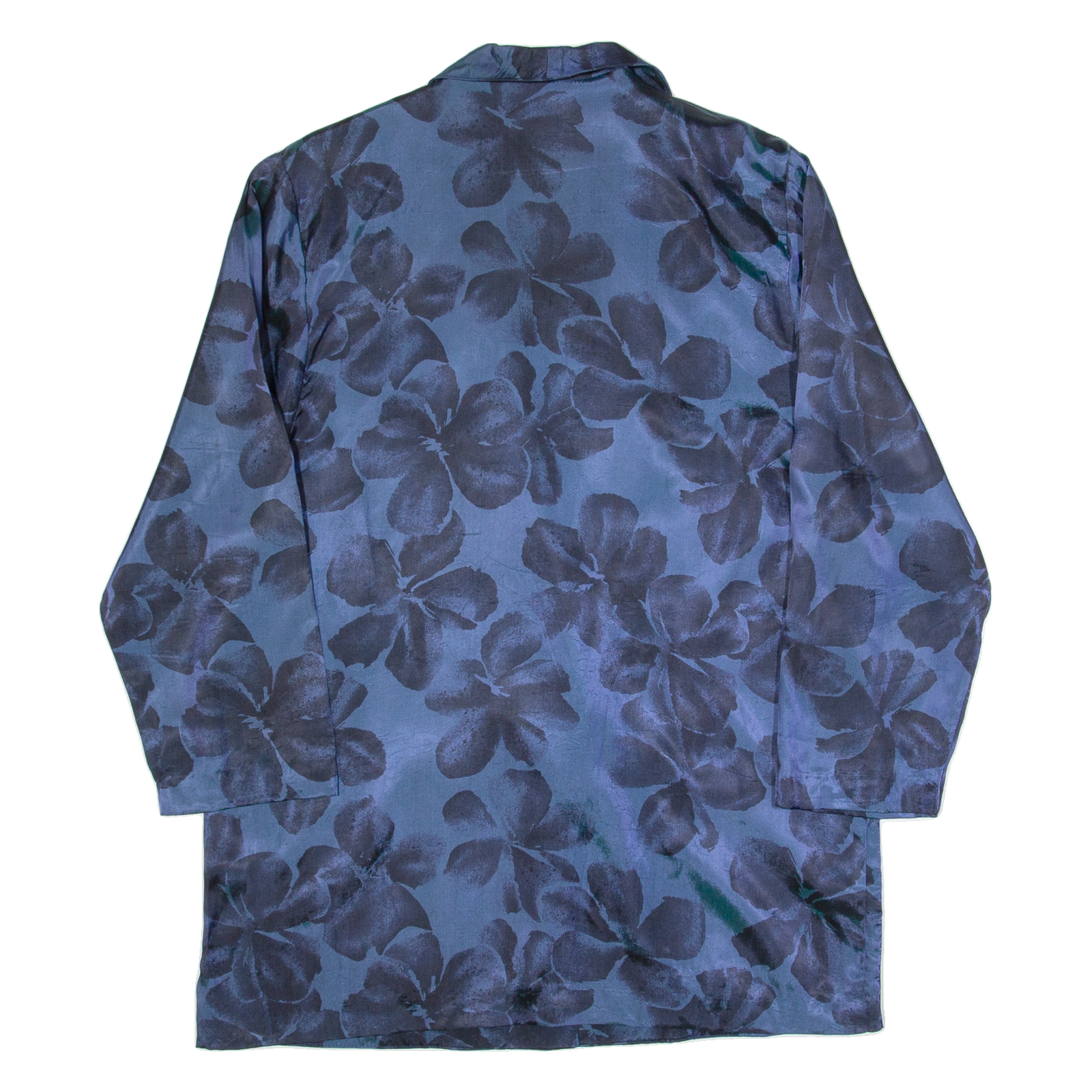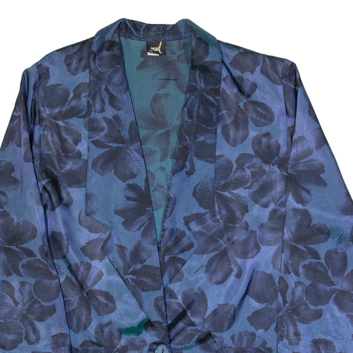MOD Blazer Style Womens Printed Top Blue V-Neck Long Sleeve 90s Floral L