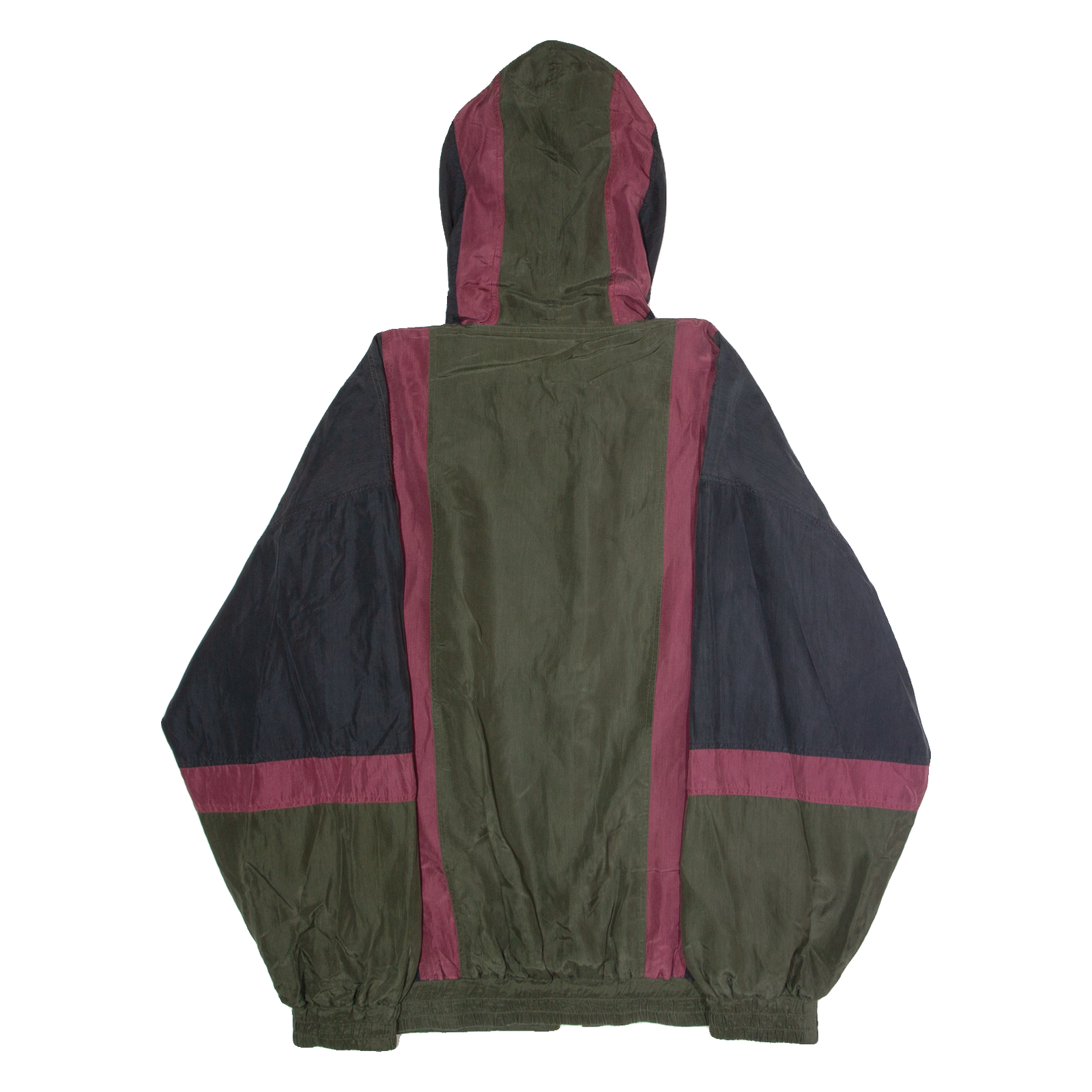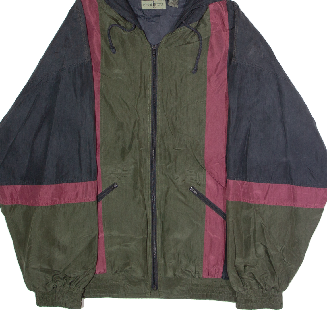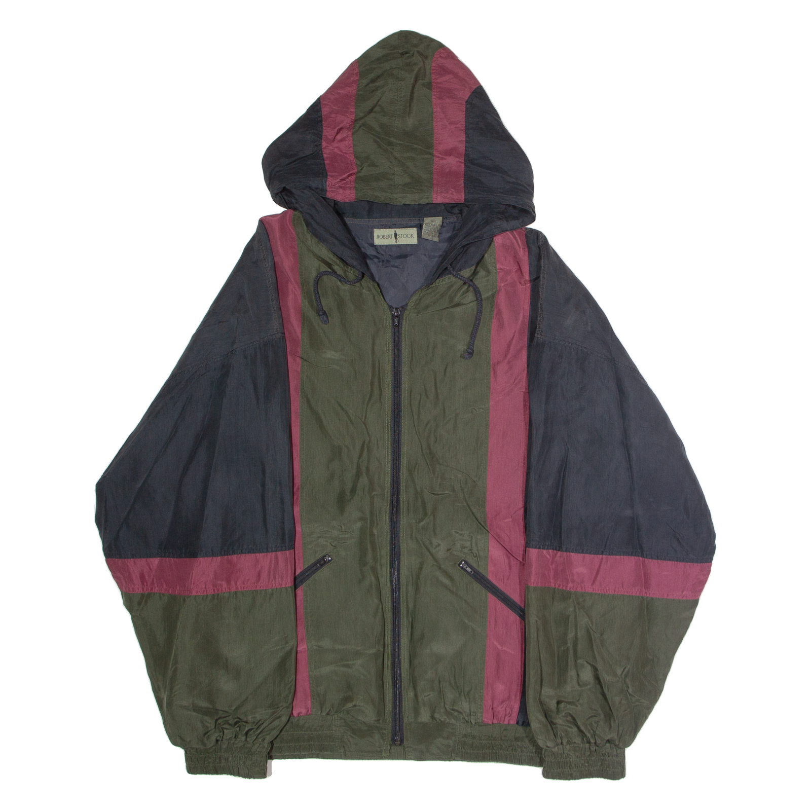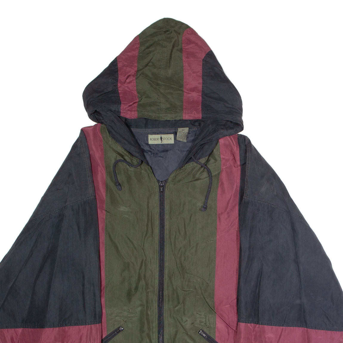 ROBERT STOCK Mens Windbreaker Jacket Green Silk 90s Hooded Striped XL