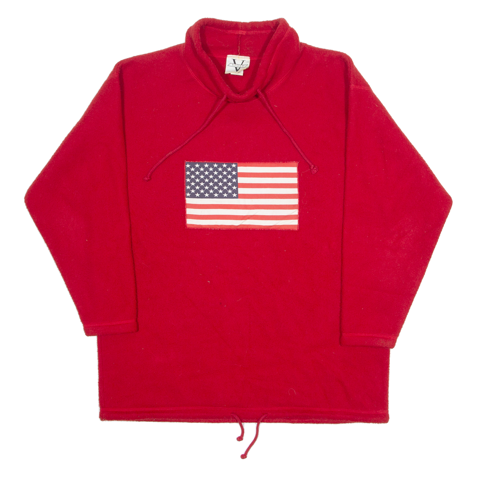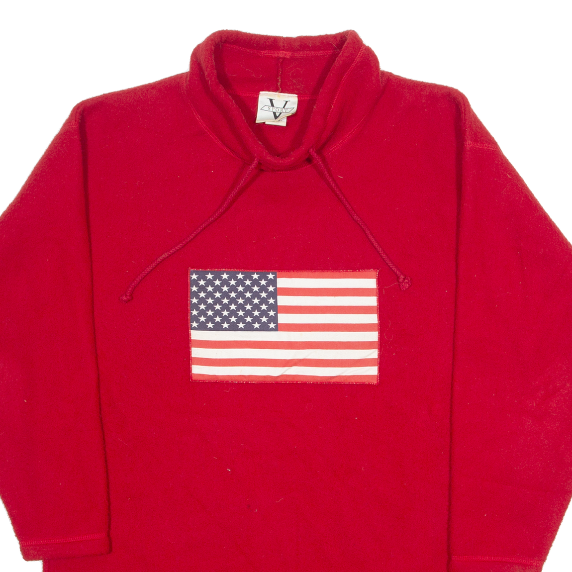 V-SPORT USA Flag Mens Fleece Red High Neck 90s Tight Knit L