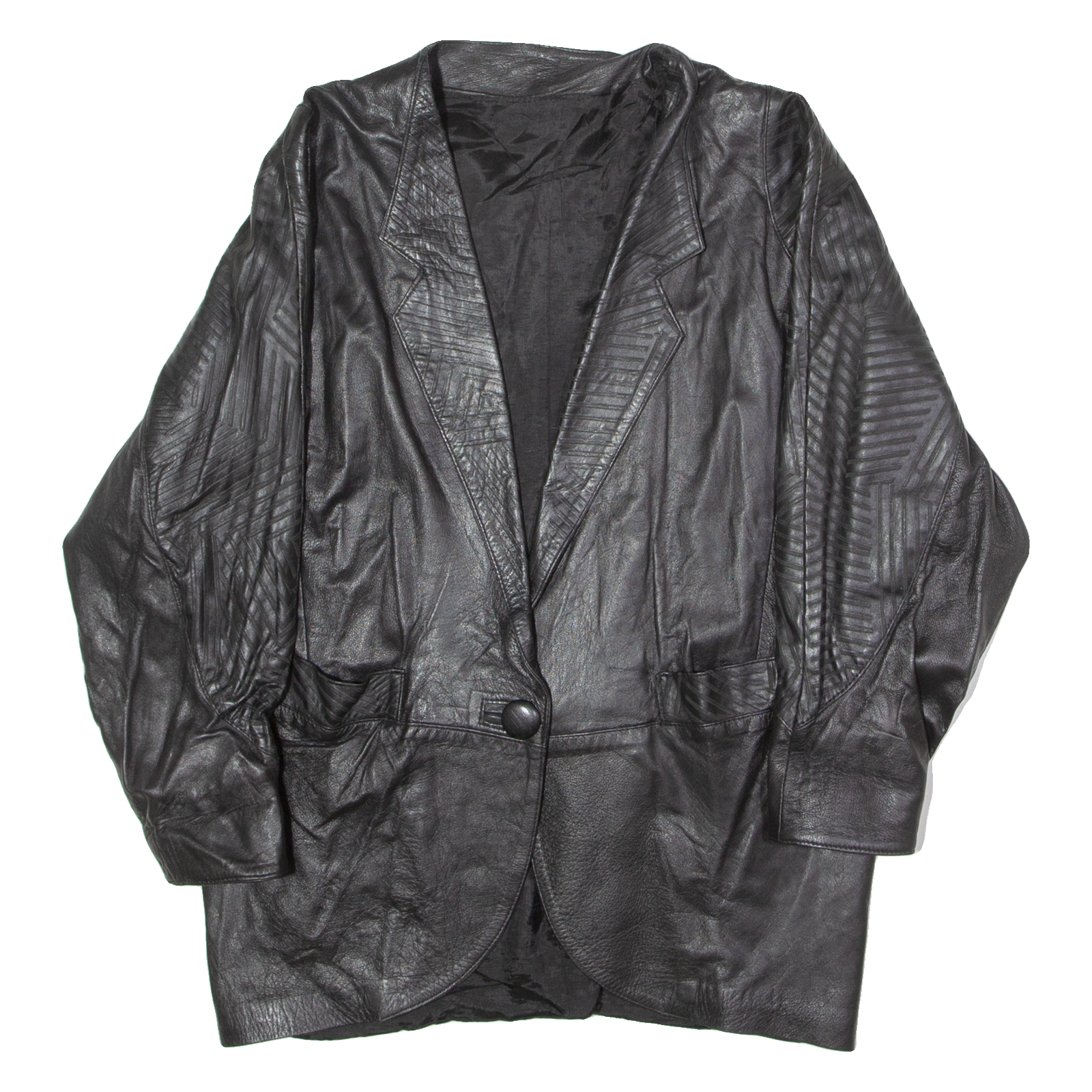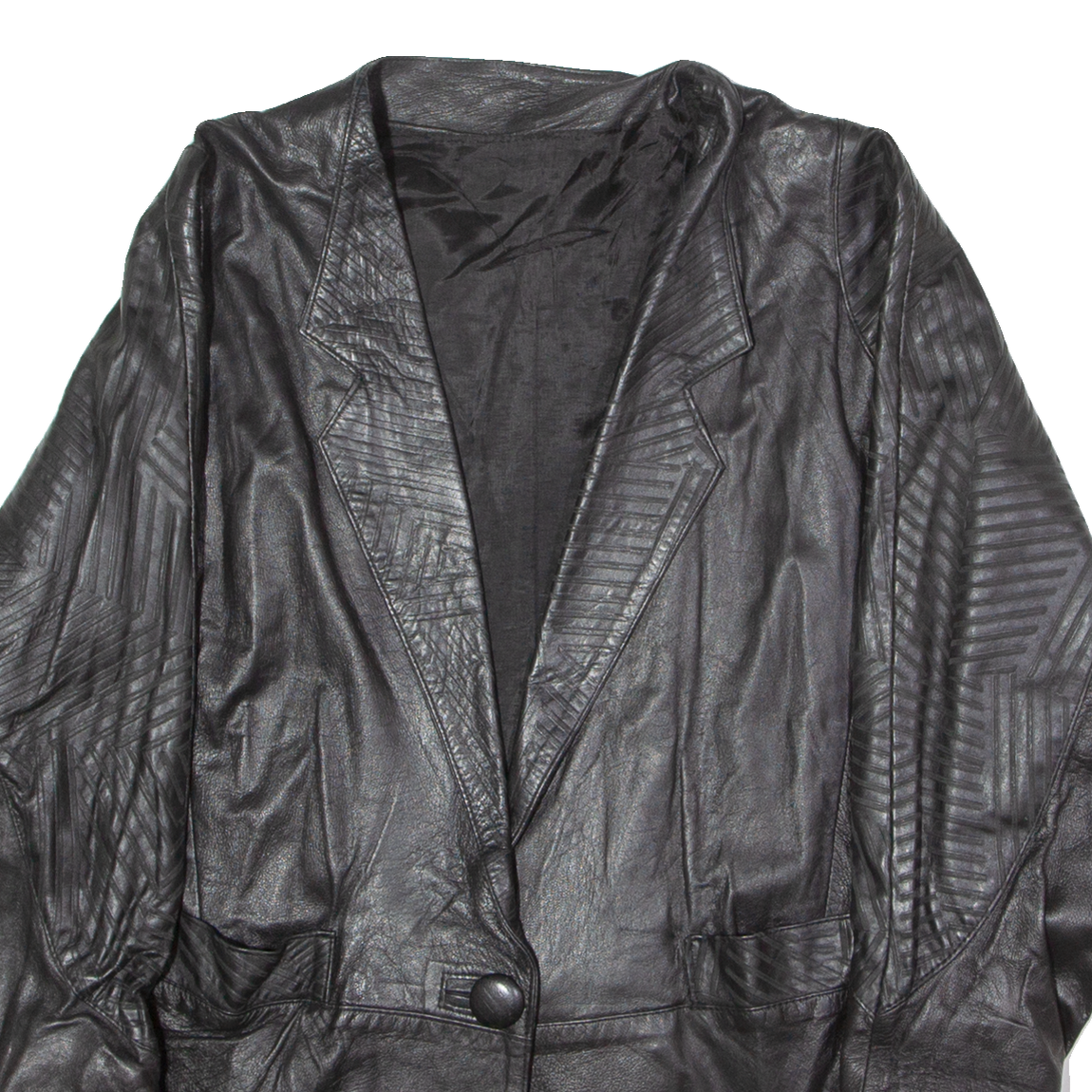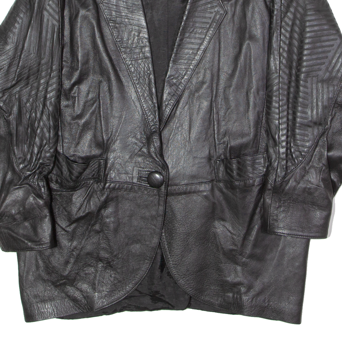 Womens Blazer Jacket Black Leather 90s XL