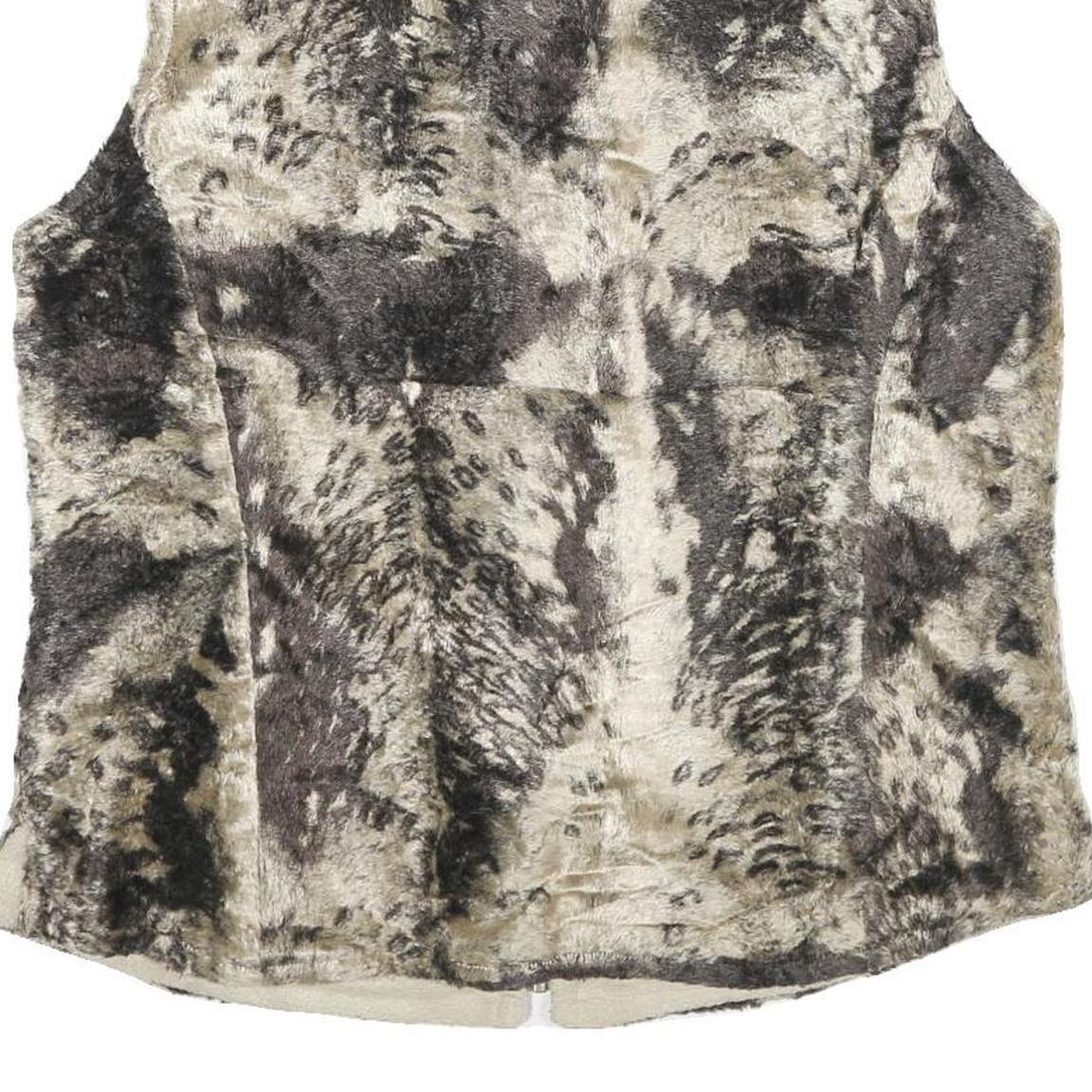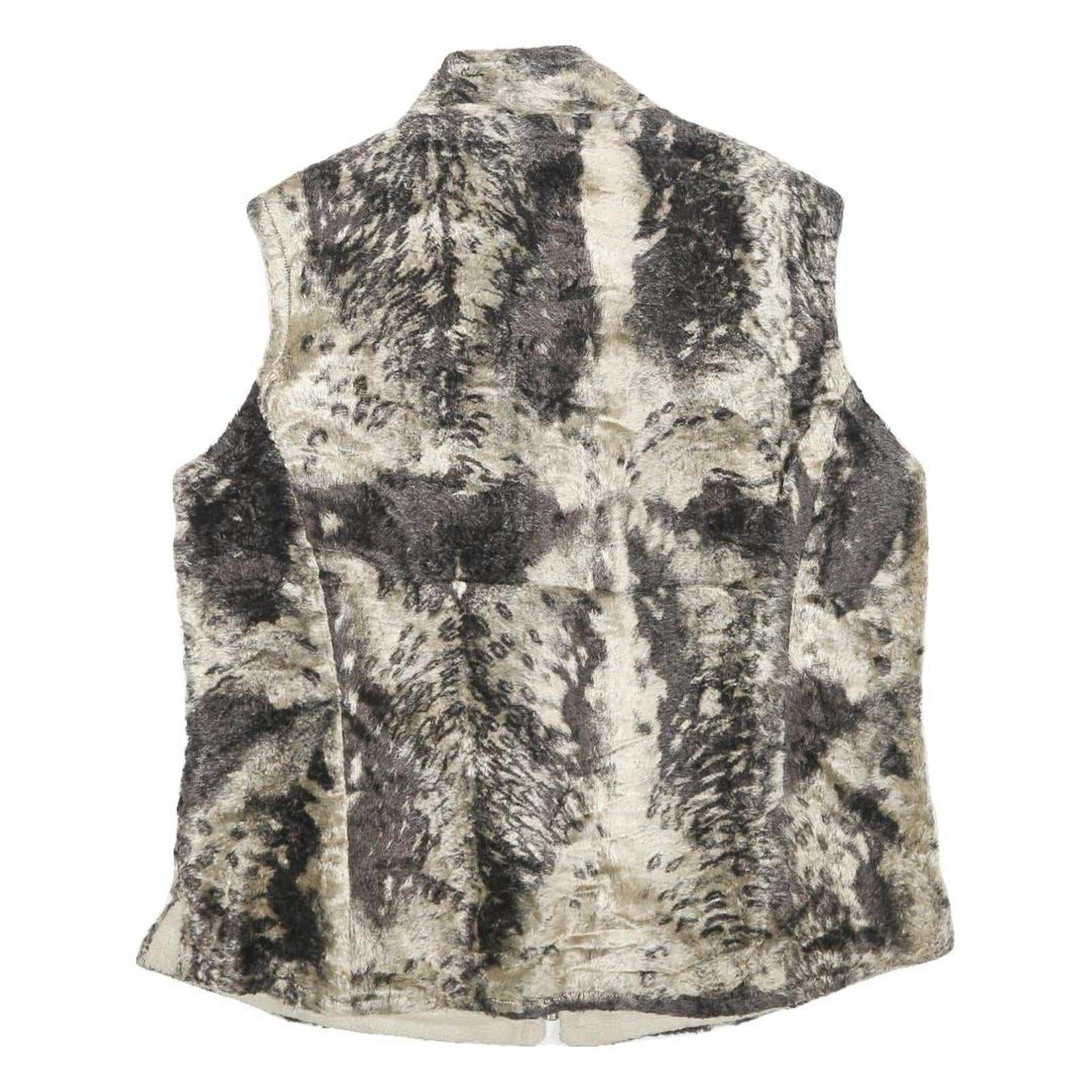 Womens Beige Black Faux Fur Zip Sleeveless Casual Lined Vest Jacket