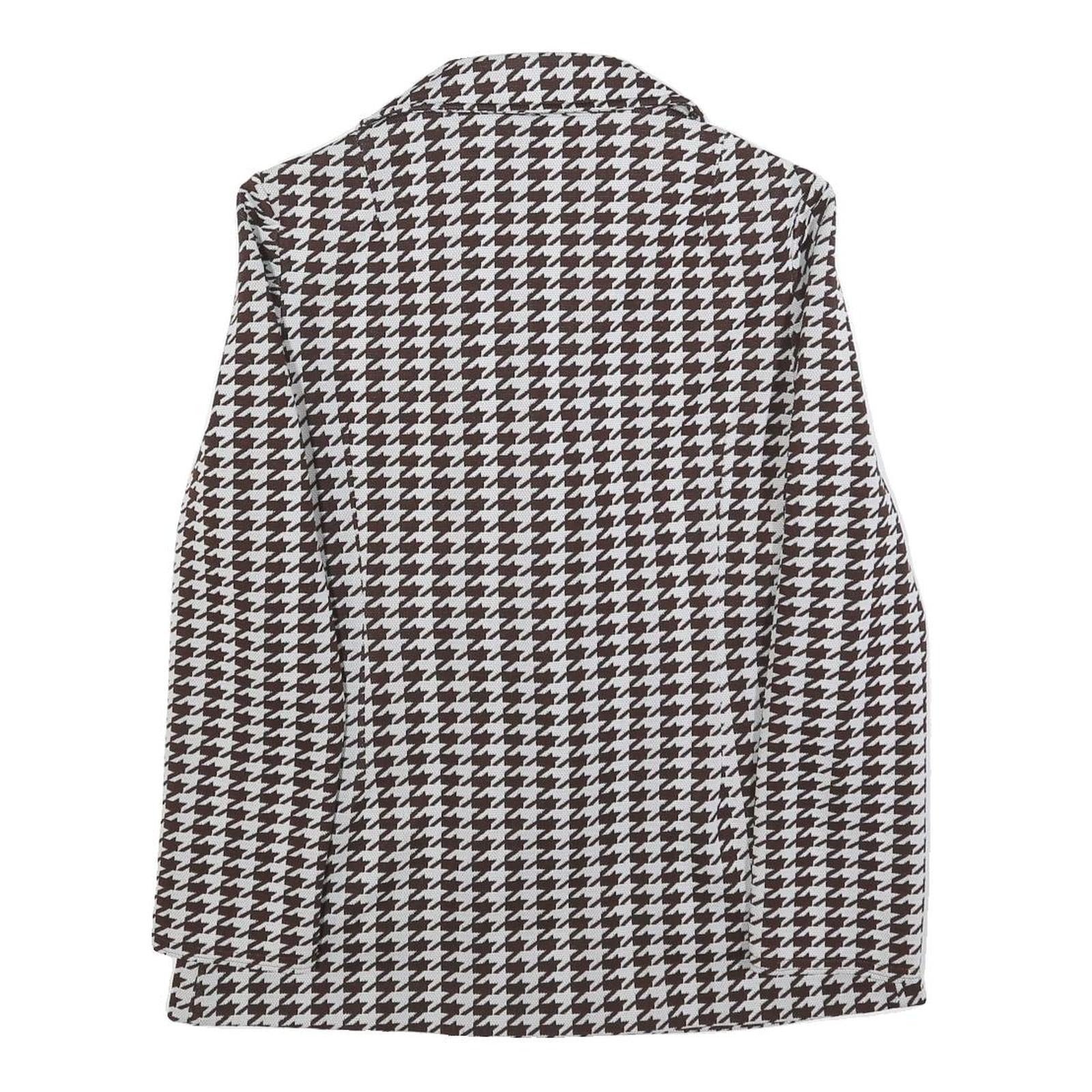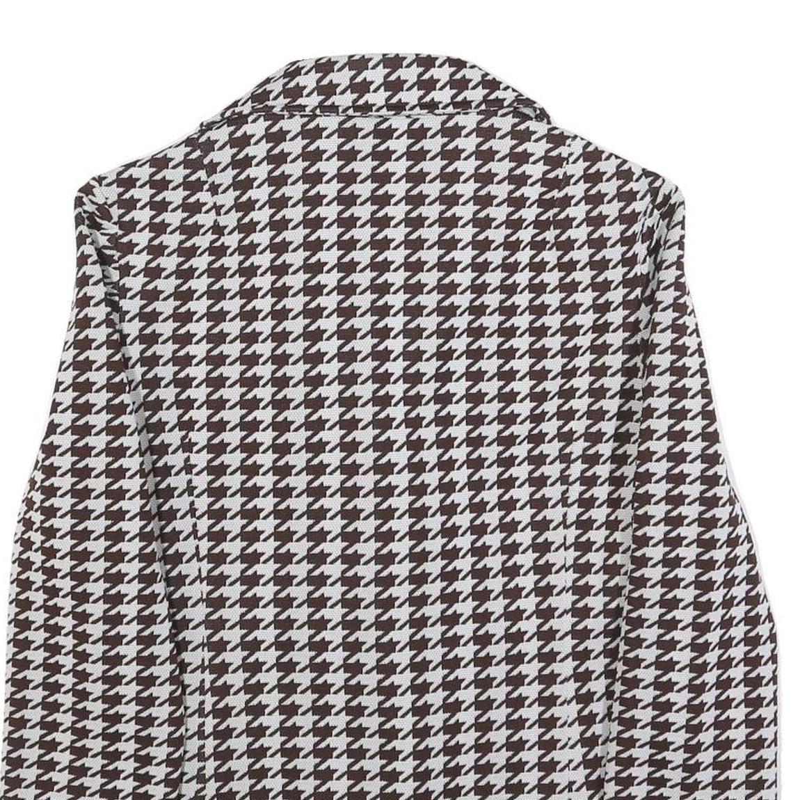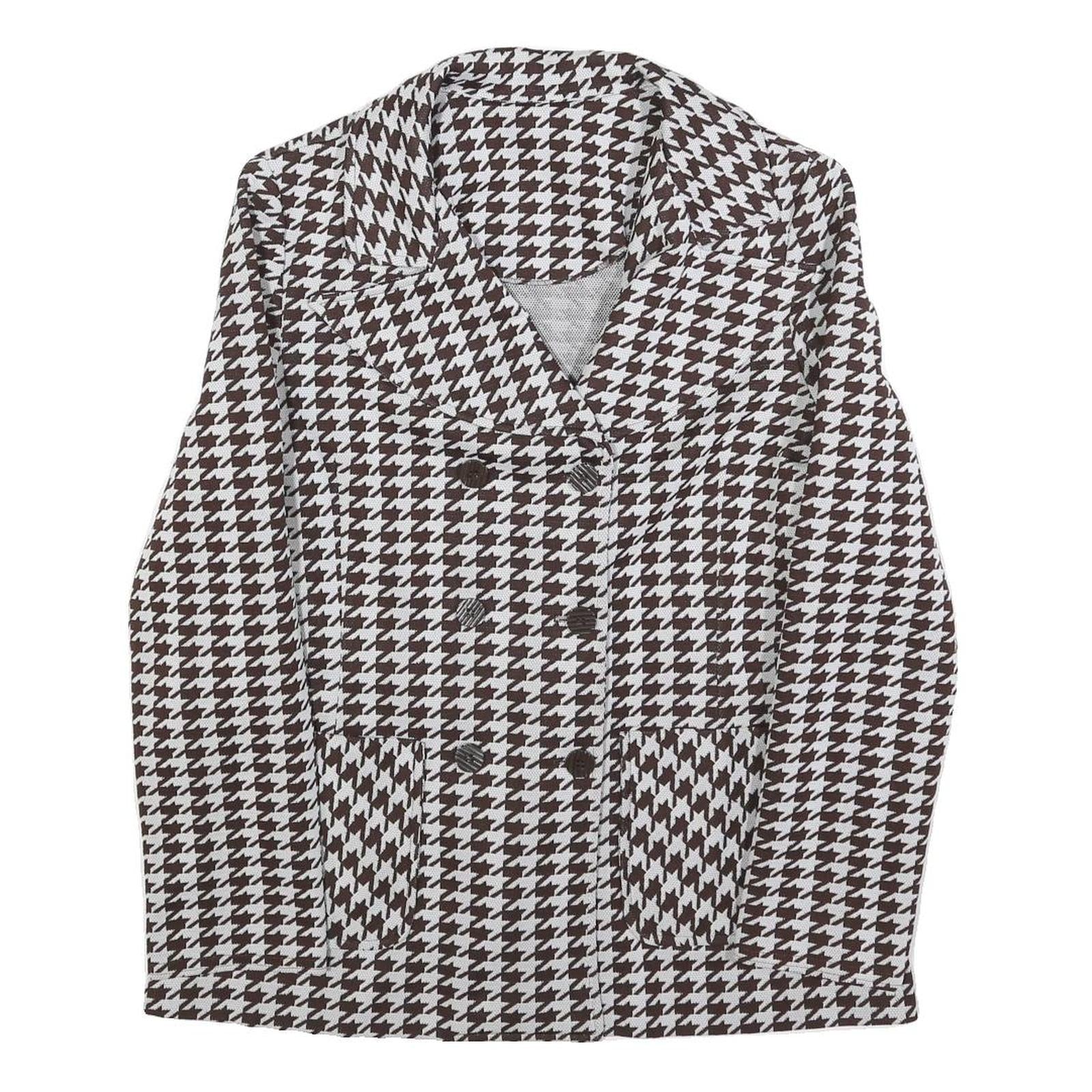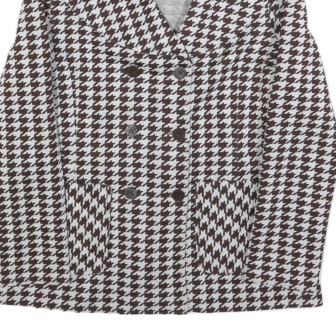 Womens Brown & White Houndstooth Button Jacket M Cotton Blend Classic Style