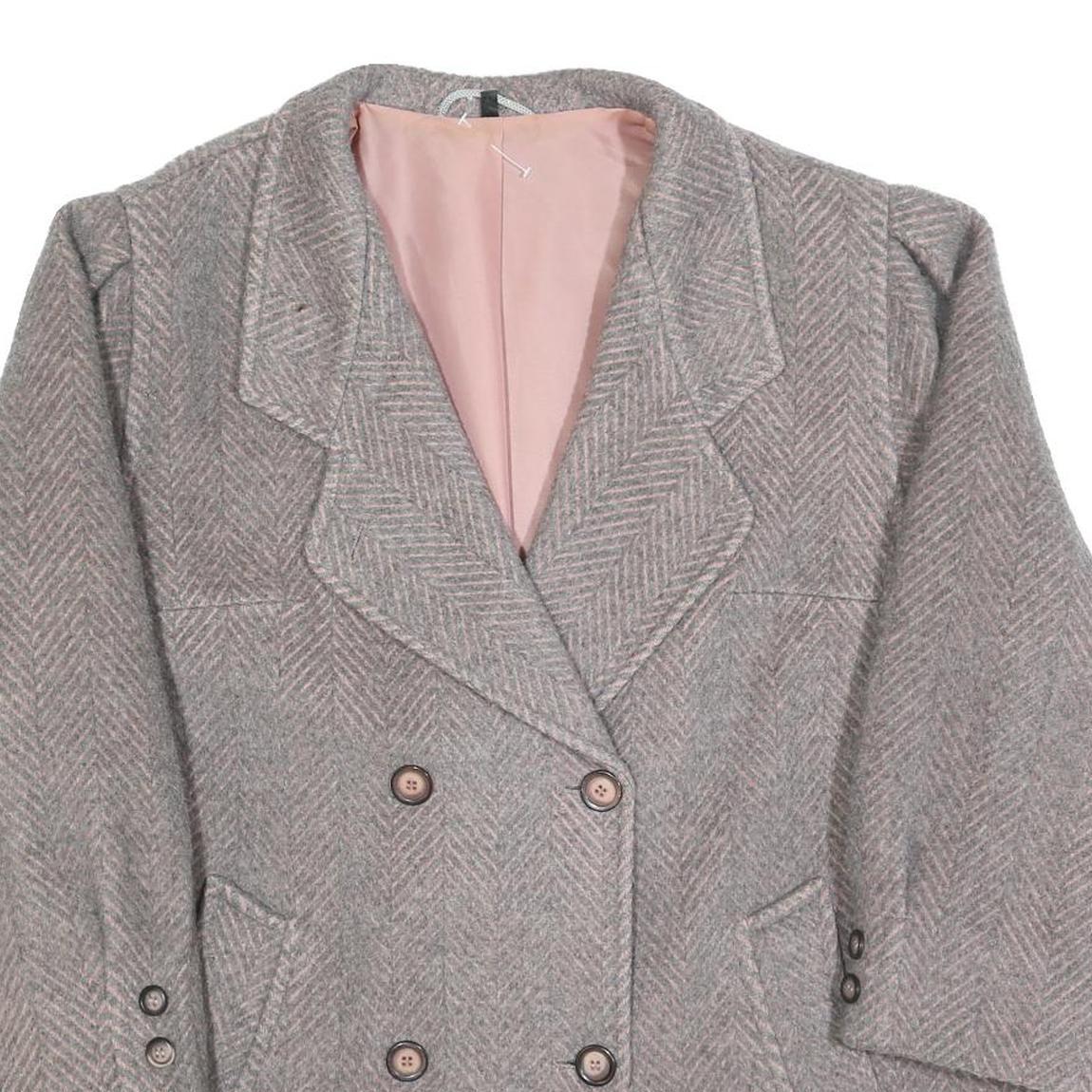 Womens Grey & Pink Plain Double Breasted Jacket L Woven Button Closure