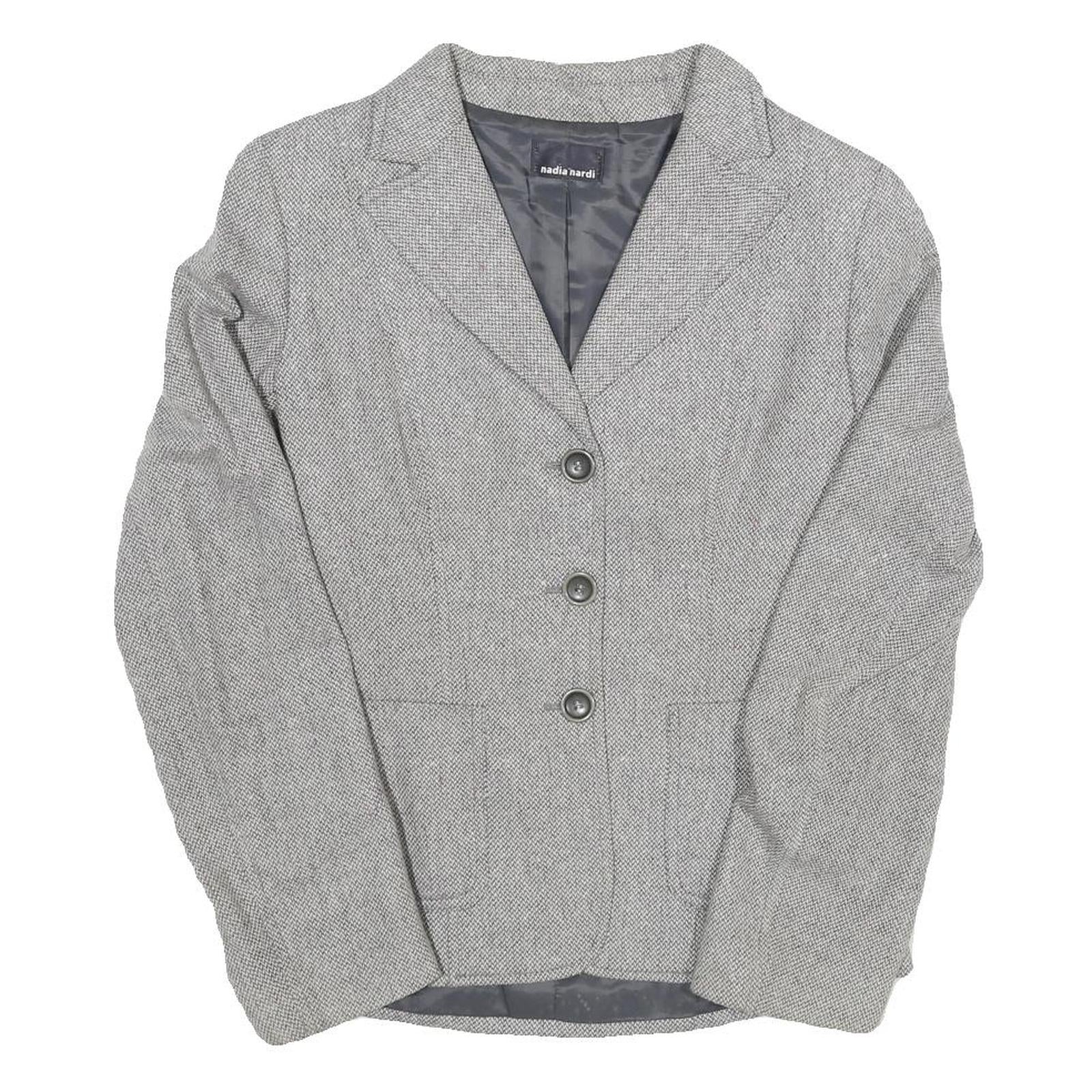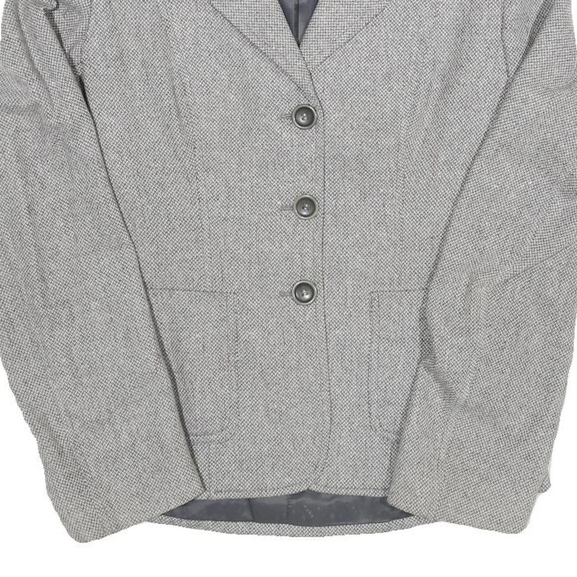 Womens Grey Plain Tailored Jacket S Polyester Blend Button Closure Formal